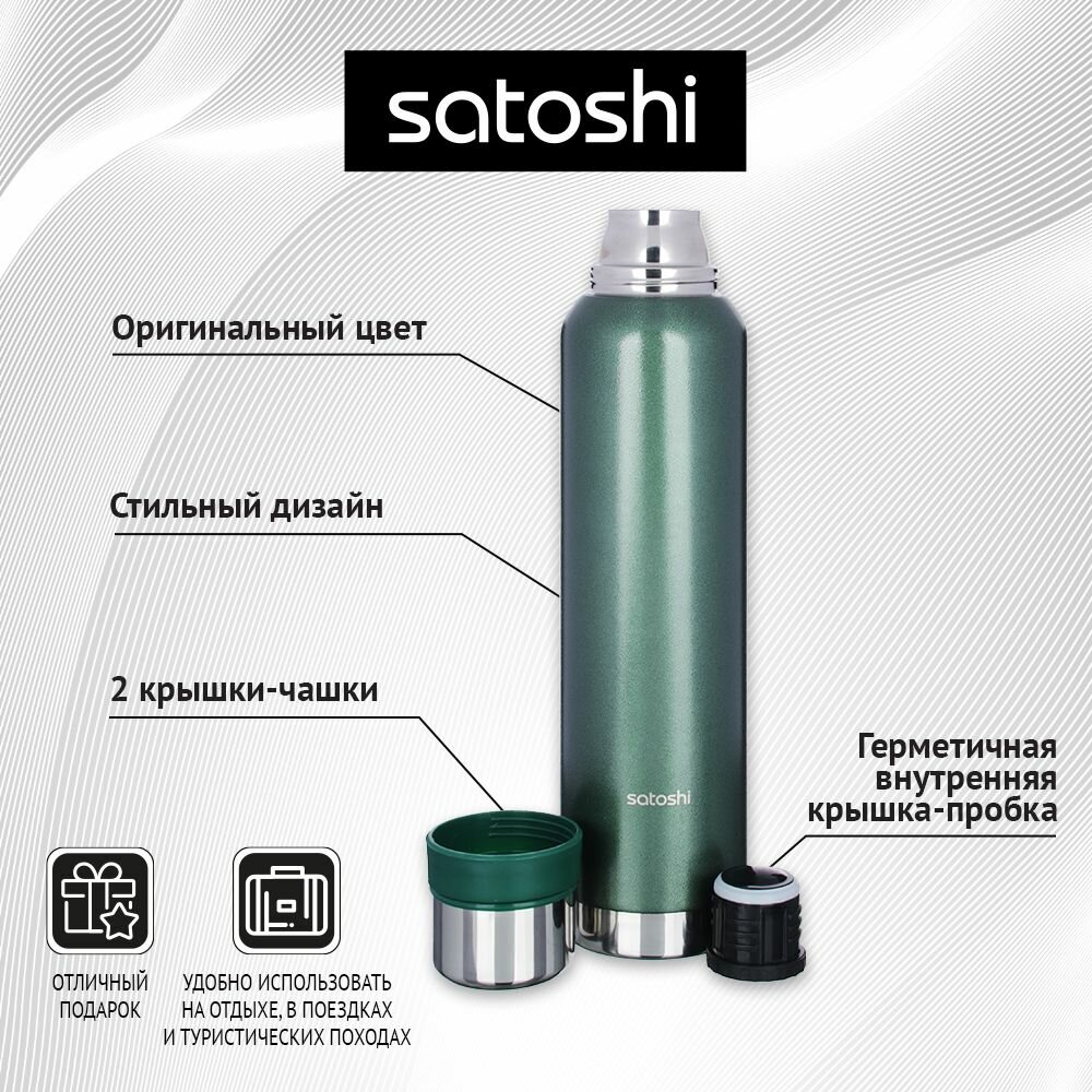 Термос SATOSHI "Монте", 0,85 л для напитков, нержавеющая сталь, зелёный