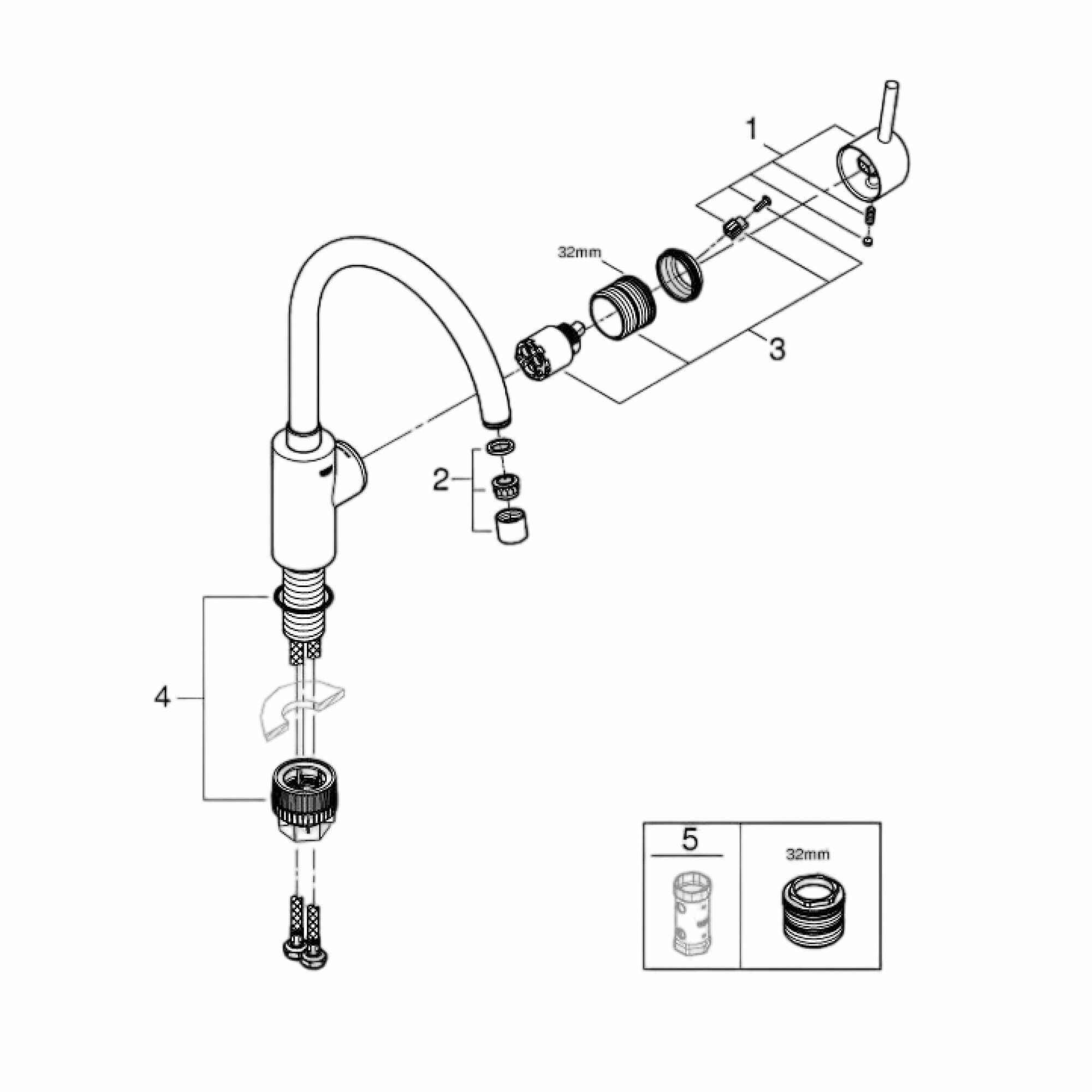 Смеситель однорычажный для мойки, GROHE Concetto, хром, (32661003)