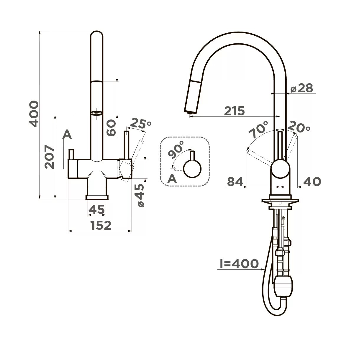 Смеситель для кухни Omoikiri Akita-S C выдвижной излив, под фильтр, хром (4994330)