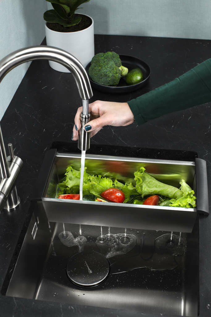 Смеситель для кухни OMOIKIRI 3 в 1 Akita-S-GB с подключением фильтра и выдвижным изливом / графит