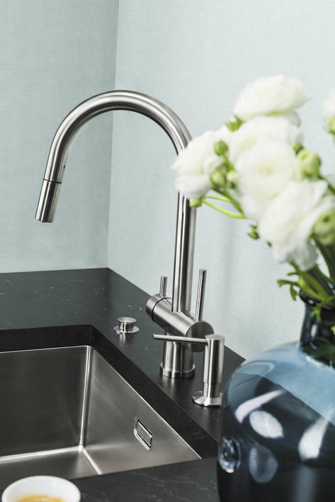 | Дополнительная информация | функция подачи холодной/горячей воды, возможность подключения фильтров для очистки и наличие вытяжного шланга; фильтрованная вода подается по отдельной трубке и не смешивается с водопроводной водой; благодаря используемому материалу известковые отложения и ржавчина на смесителе исключены, а небольшой налет, возникающий при эксплуатации легко удаляется при помощи мягкой губки; полный набор креплений и соединительных шлангов, а также подробная инструкция позволят без видимых усилий установить смеситель |