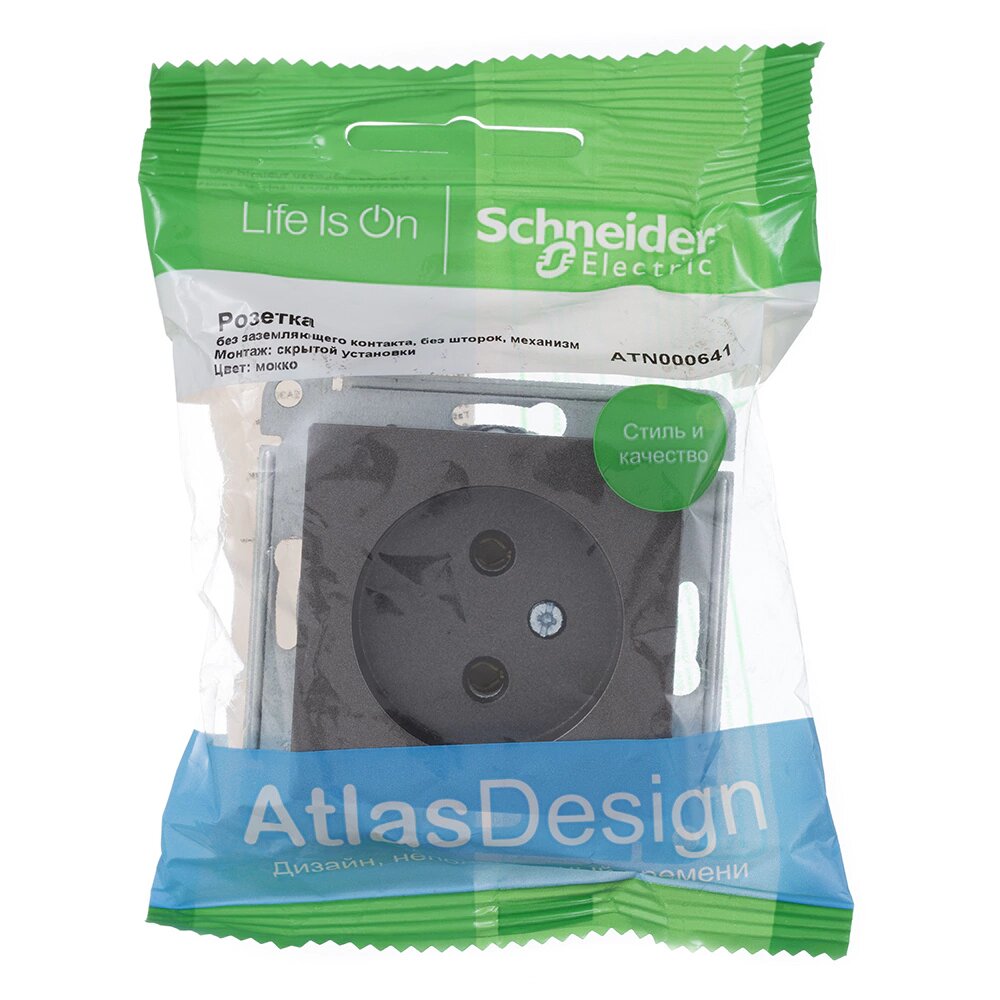 Механизм розетки Schneider Electric AtlasDesign без заземления, без шторок, 16А, Мокко