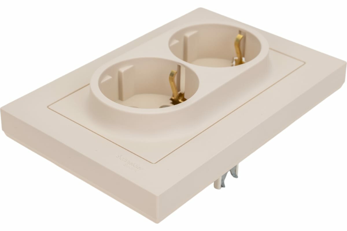 Розетка двухместная ATLASDESIGN, скрытый монтаж, с заземлением, бежевый. ATN000224 Schneider Electric