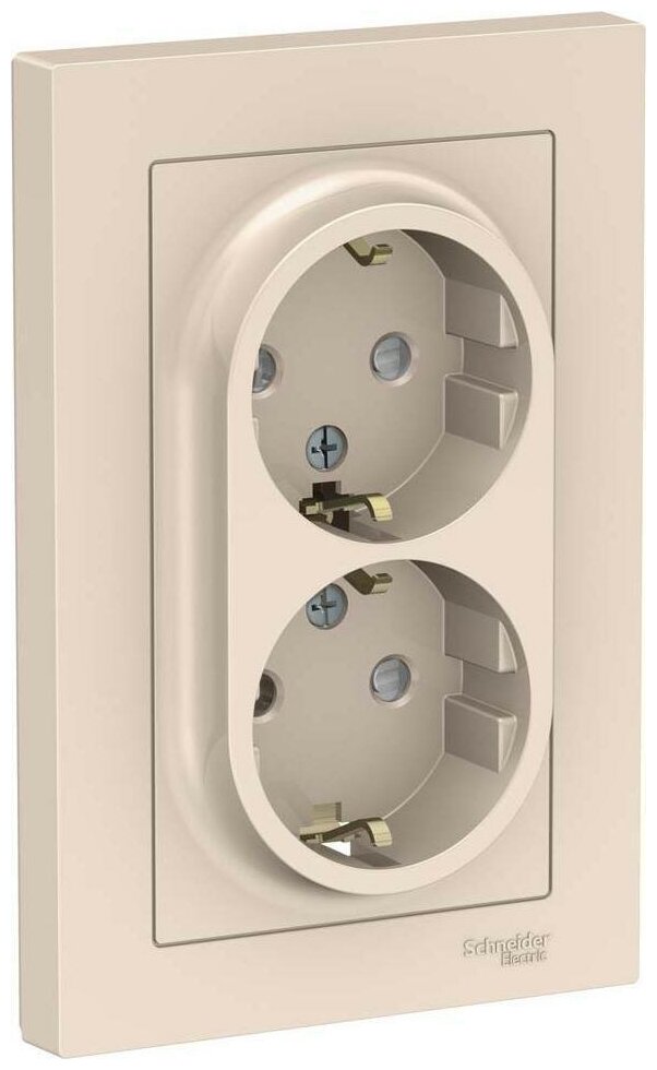 Розетка двойная встраиваемая Schneider Electric Atlasdesign, с/з, 16 А, IP20, бежевая