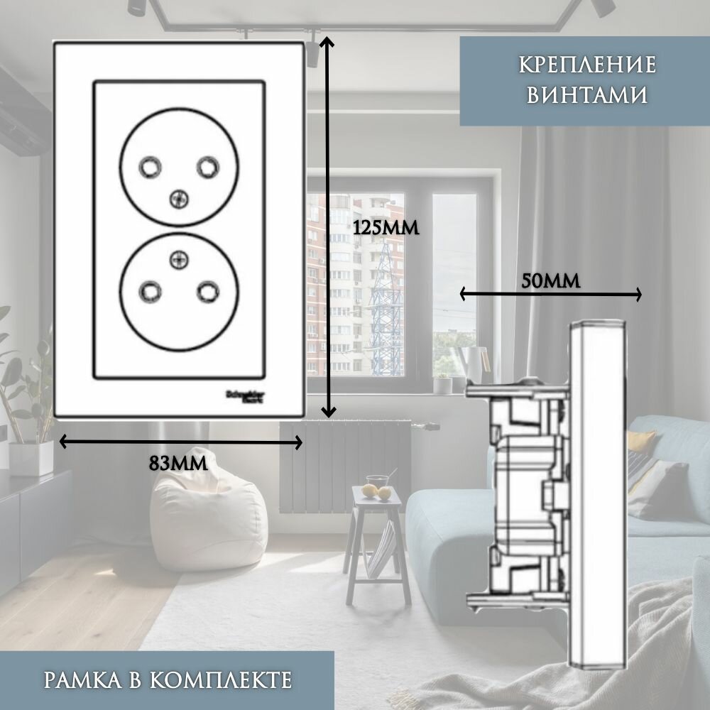 Розетка Schneider Electric AtlasDesign двойная с заземлением белая (комплект из 4 шт.)