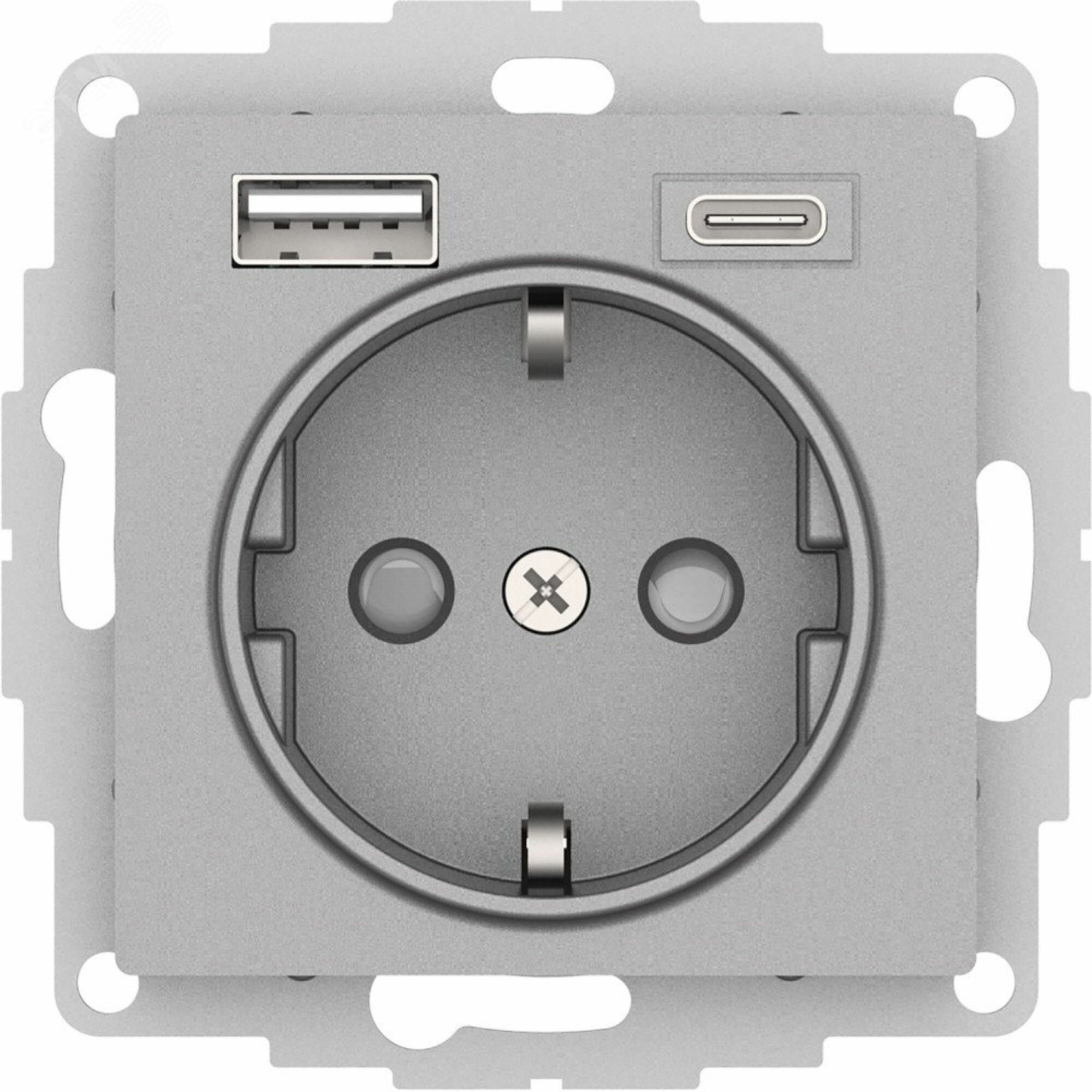 Розетка Systeme Electric (schneider Electric) SCHNEIDER ELECTRIC ATLASDESIGN 16А с 2 USB A+C, механизм, алюминий, ATN000332