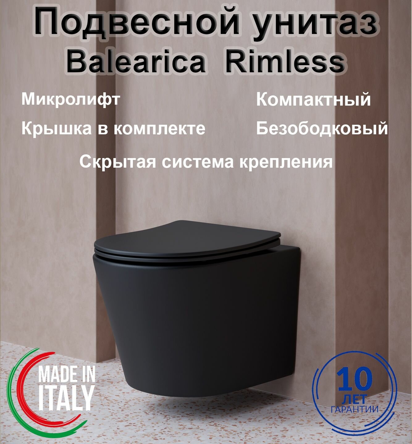 Подвесной унитаз Ceramicanova Balearica CN6000MB с микролифтом, безободковый Чёрный Матовый