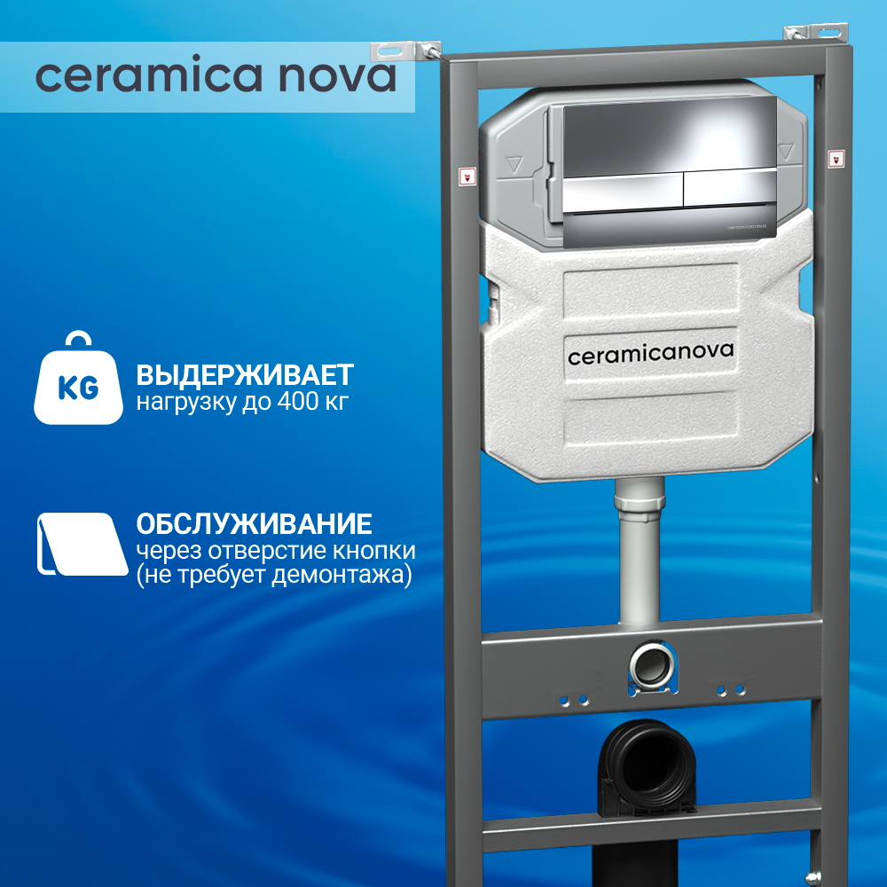 Инсталляция рамная для подвесного унитаза Ceramica Nova с кнопкой Flat, 114 x 50 см, белая
