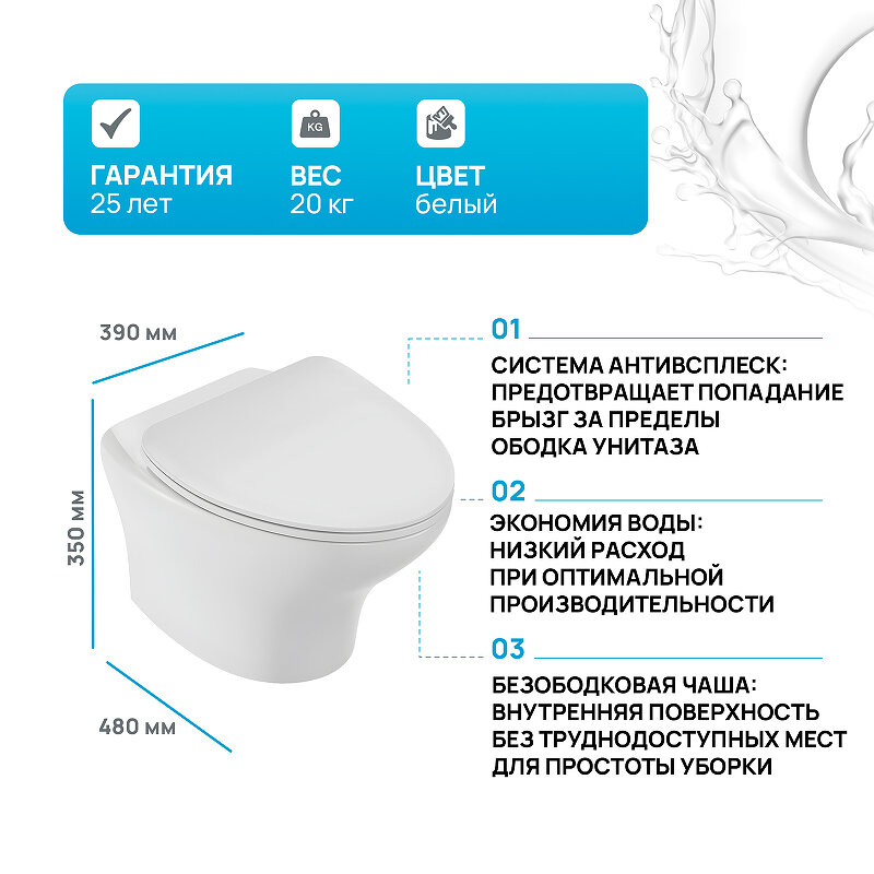 | Дополнительная информация | Размер унитаза адаптирован к небольшим пространствам. |