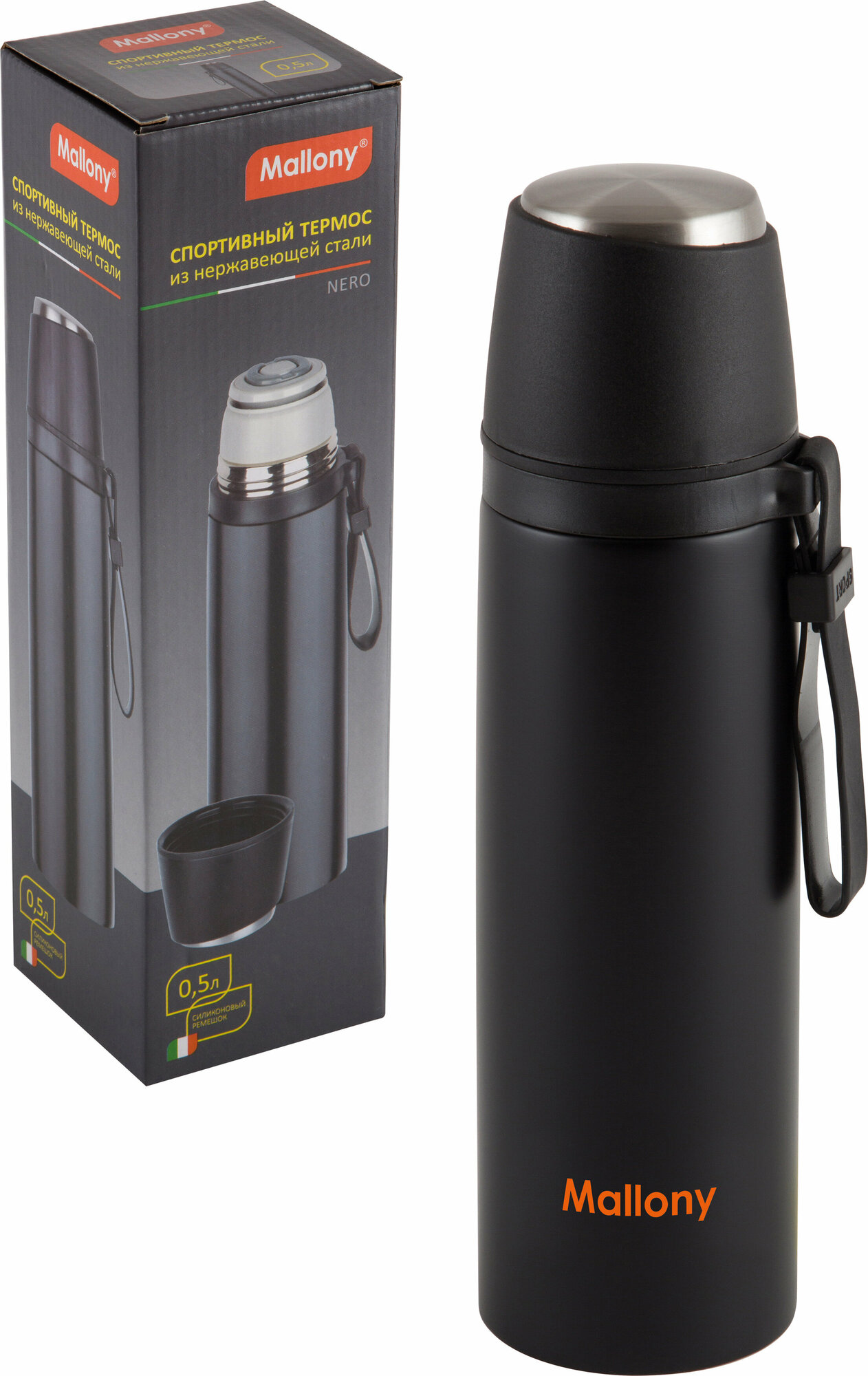 Термос Mallony NERO 005242, с крышкой-чашкой, с ремешком, 0,5л, нержавеющая сталь