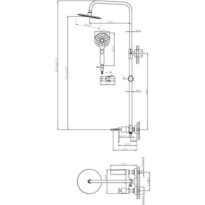 Душевая система 250 мм Cezares Momento MOMENTO-CD-01