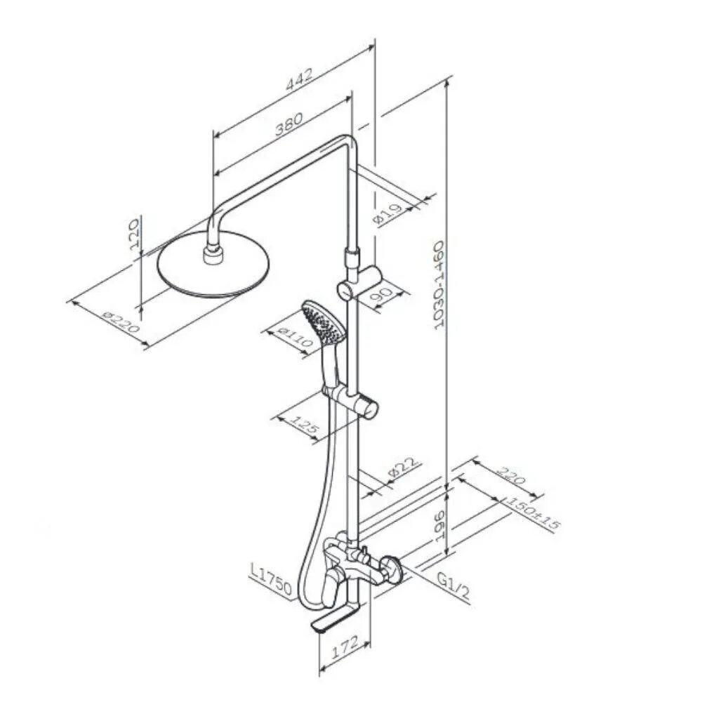 | Форма верхнего душа | круглая |