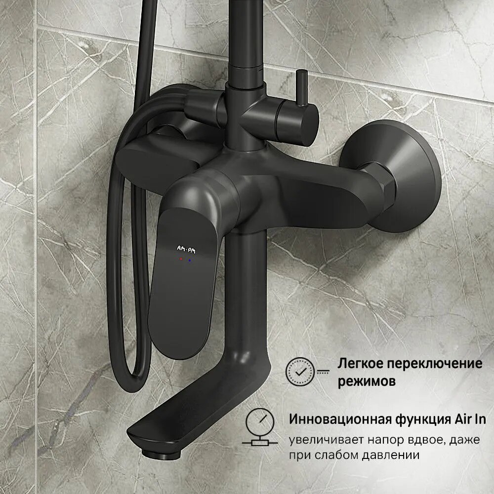 Купить Душевая система AM.PM Suit, с тропическим душем и смесителем, складной поворотный излив, черный матовый