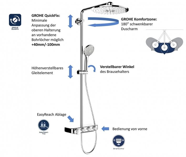 Ниже Вы можете прочитать отзывы на Душевая система GROHE Euphoria SmartControl 310 DUO Cube с термостатом, белая луна (26508LS0), ознакомится с подробными характеристиками, посмотреть интересные обзоры и фотографии на Душевая система GROHE Euphoria SmartControl 310 DUO Cube с термостатом, белая луна (26508LS0).