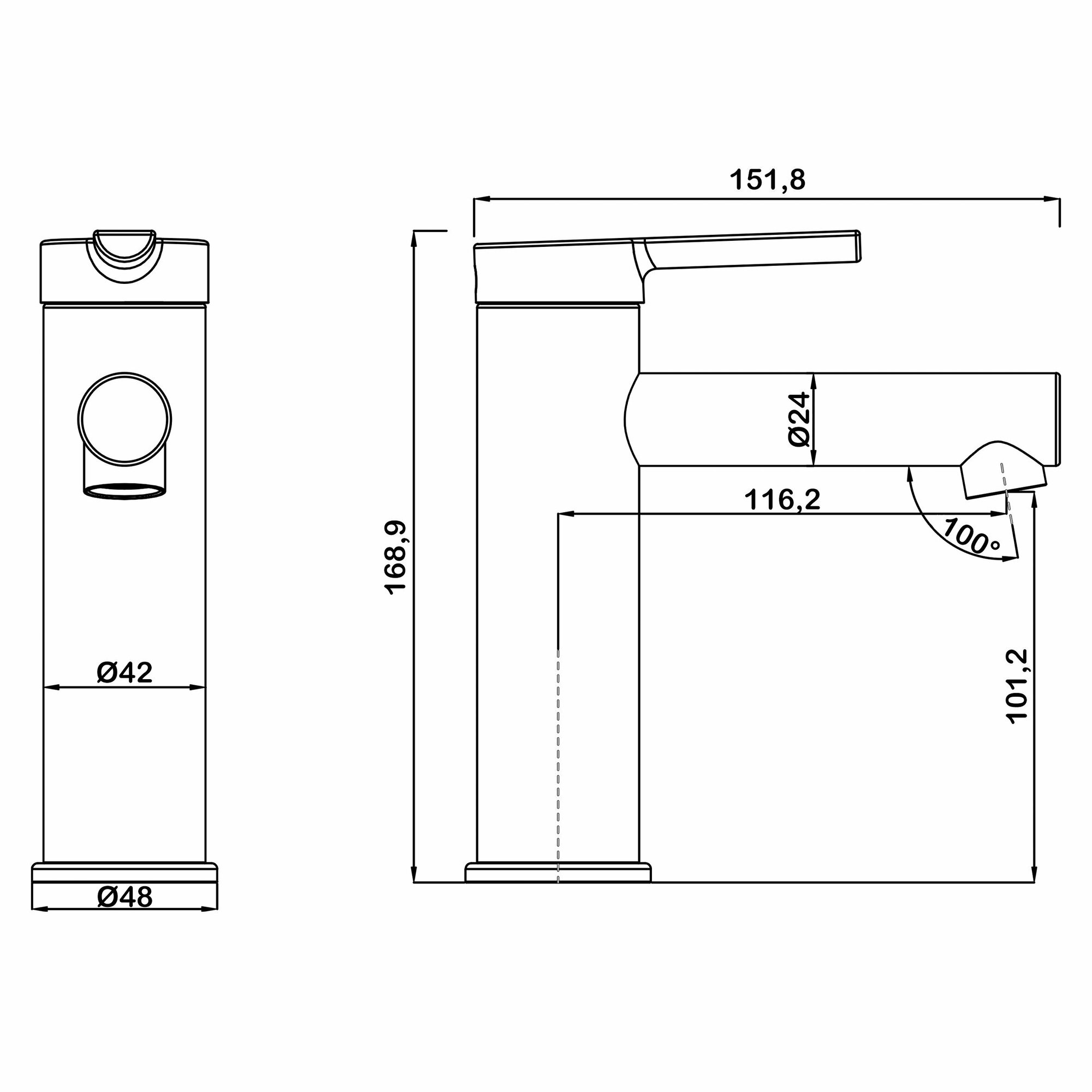 Смеситель для умывальника Swedbe Diana 1010В однорычажный, длина излива 116,2 мм, черный матовый
