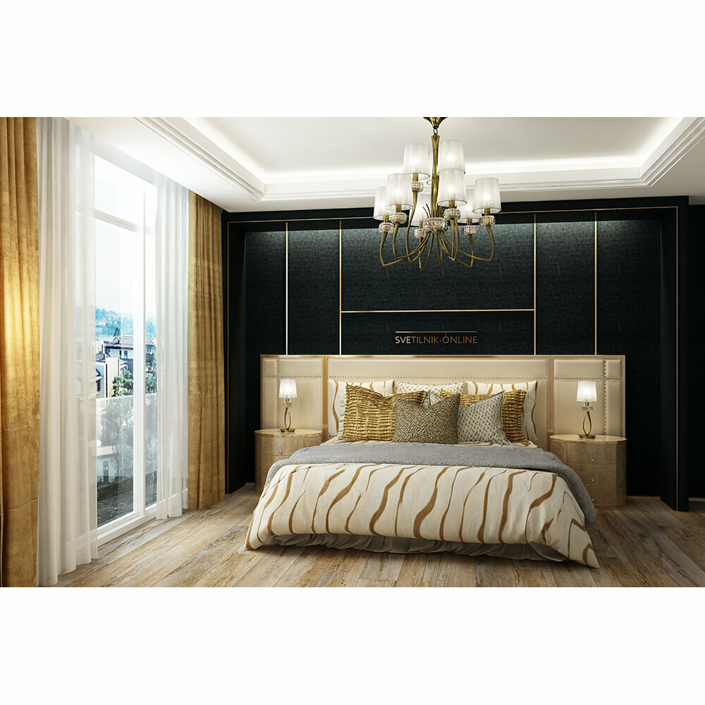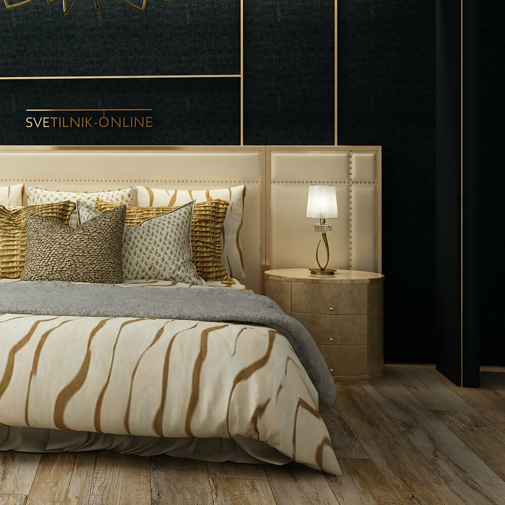 Настольная лампа Mantra Loewe 4737, цвет Белый/Античная латунь, материал Металл/Органза интересное: