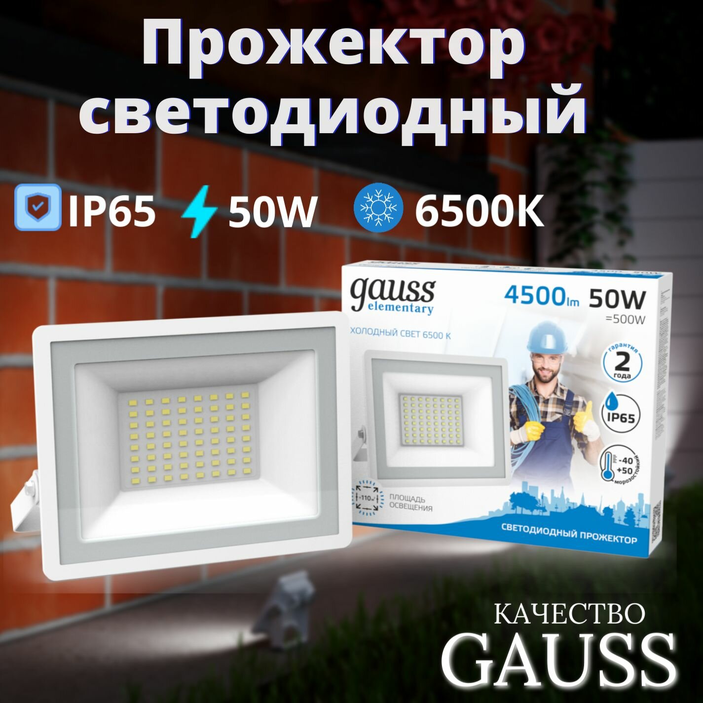 Купить Прожектор светодиодный 50W холодный свет 6500К 220V IP65 белый Gauss Elementary
