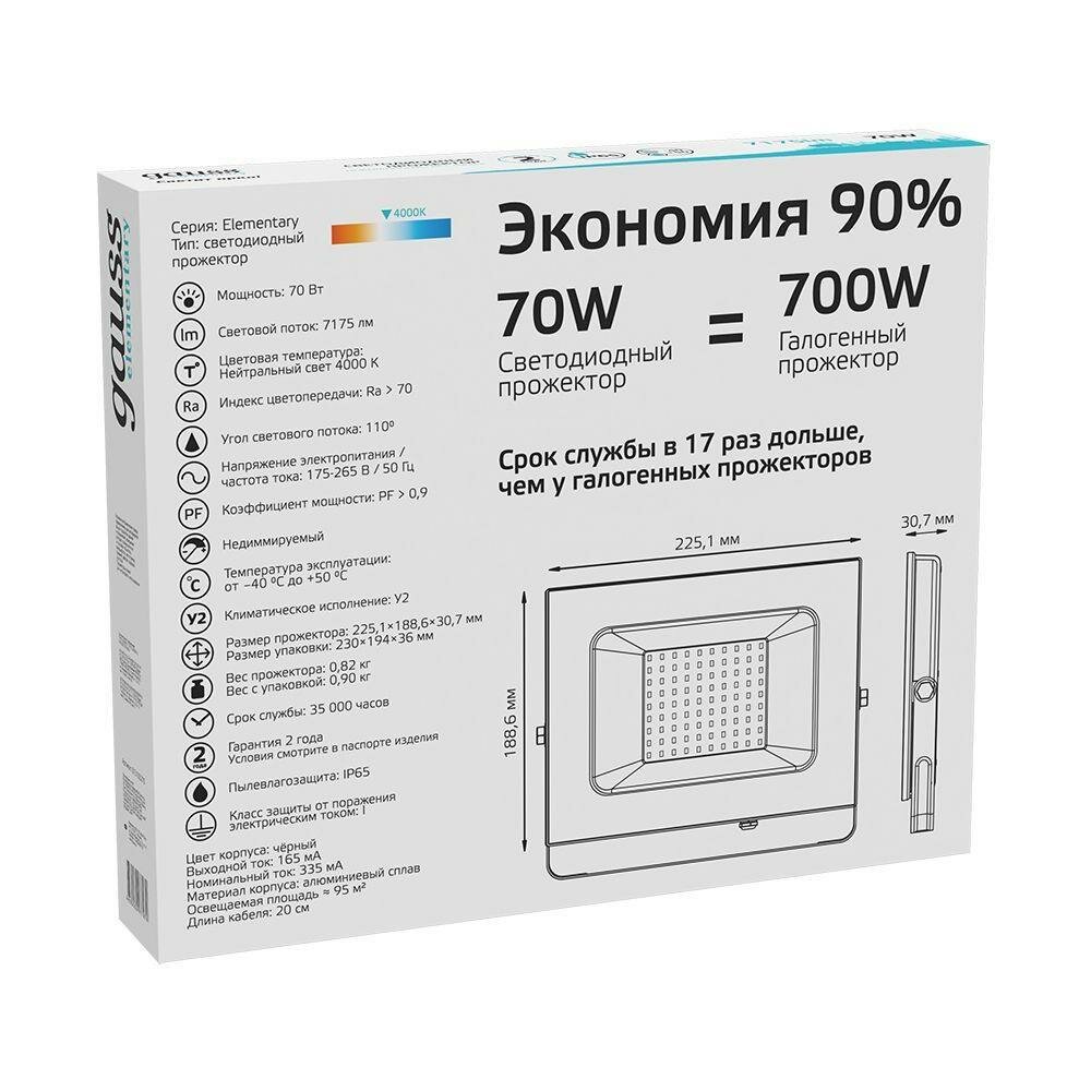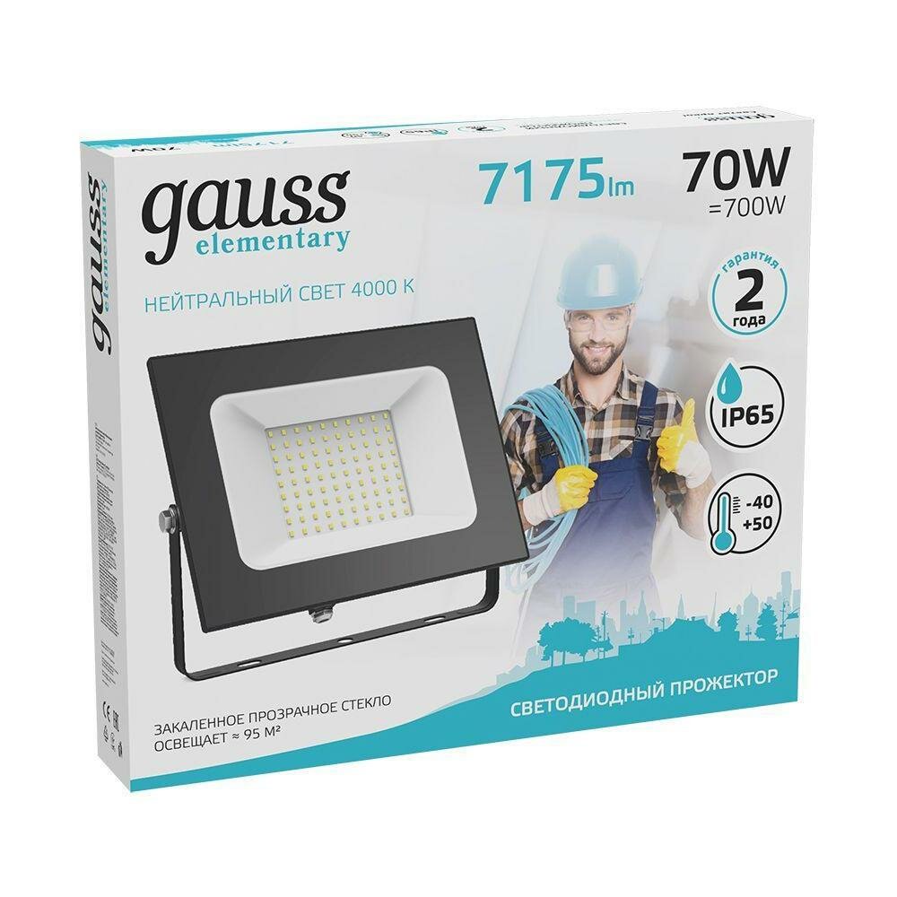 Прожектор светодиодный ДО-70 Вт 7175 Лм 4000К IP65 175-265 В черный LED Elementary GAUSS 613100270