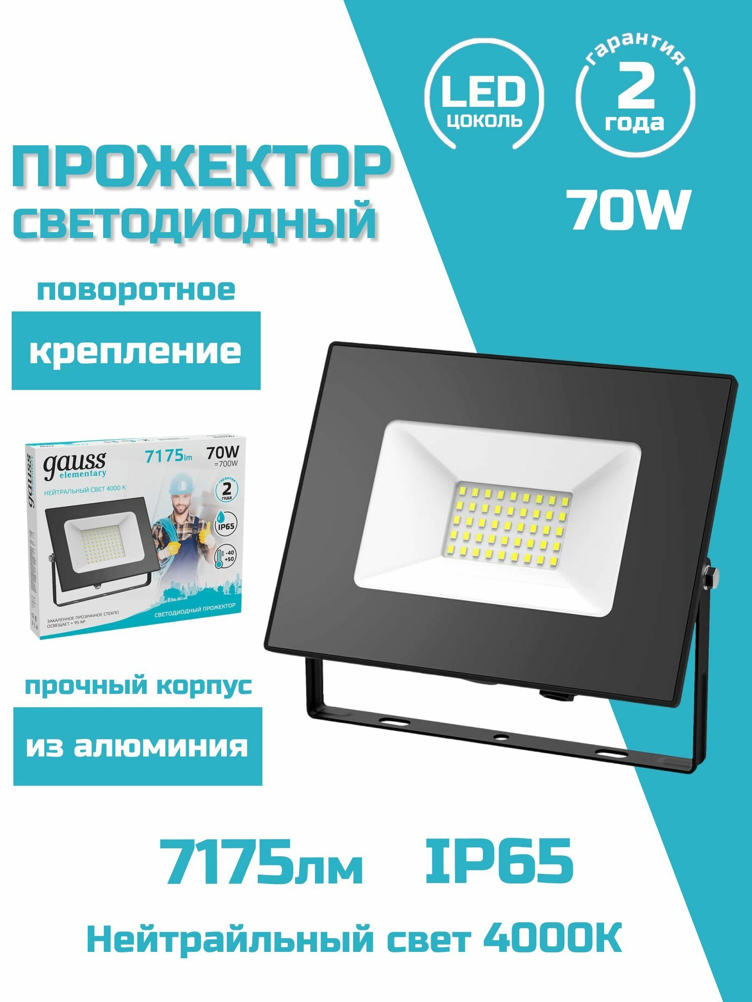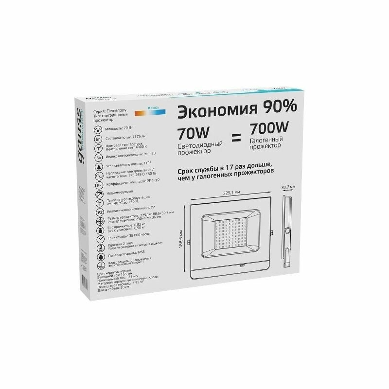 Прожектор GAUSS Elementary 70W 7175lm IP65 4000К черный 1/10