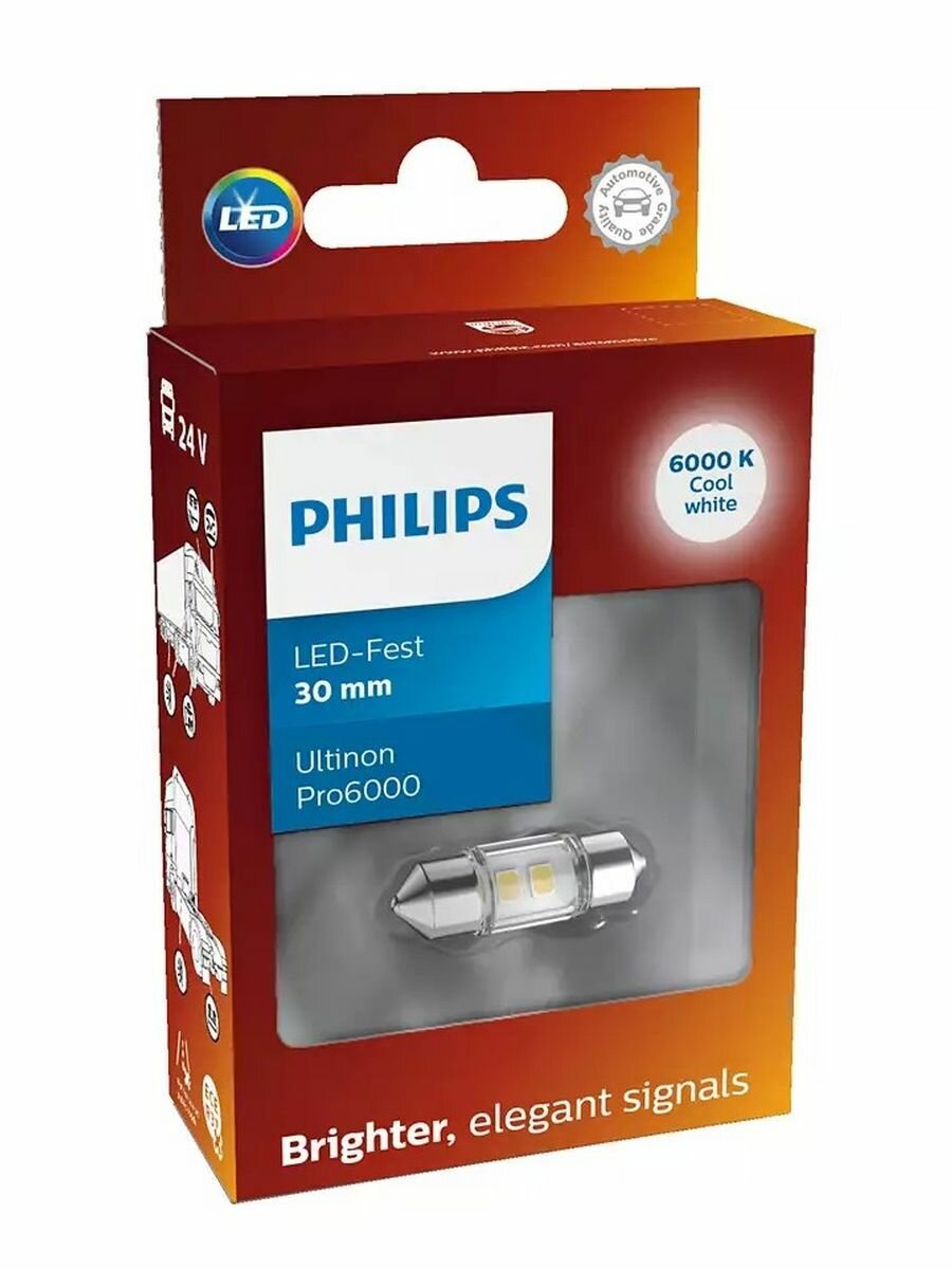 PHILIPS Fest 30 24V-LED (SV8,5) 6000K Ultinon Pro6000 1шт.