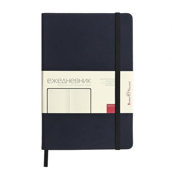 Ежедневник недатированный Bruno Visconti "MEGAPOLIS VELVET" в твердой обложке, с резинкой, темно-синий NAVY А5 арт.3-468/17 интересное: