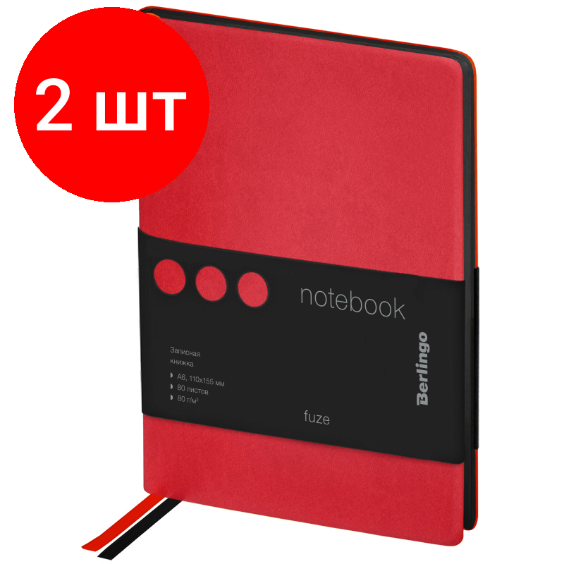 Купить 2 шт. Записная книжка А6 80л., кожзам, Berlingo "Fuze", черный срез, красный