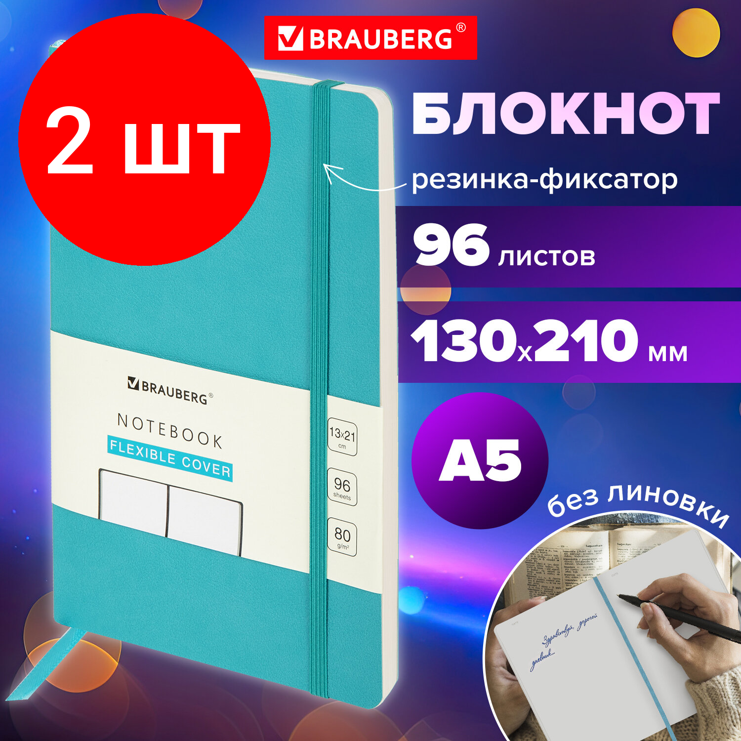 Купить Комплект 2 шт, Блокнот А5 (130х210 мм), BRAUBERG ULTRA, под кожу, 80 г/м2, 96 л., без линовки, бирюзовый, 113023