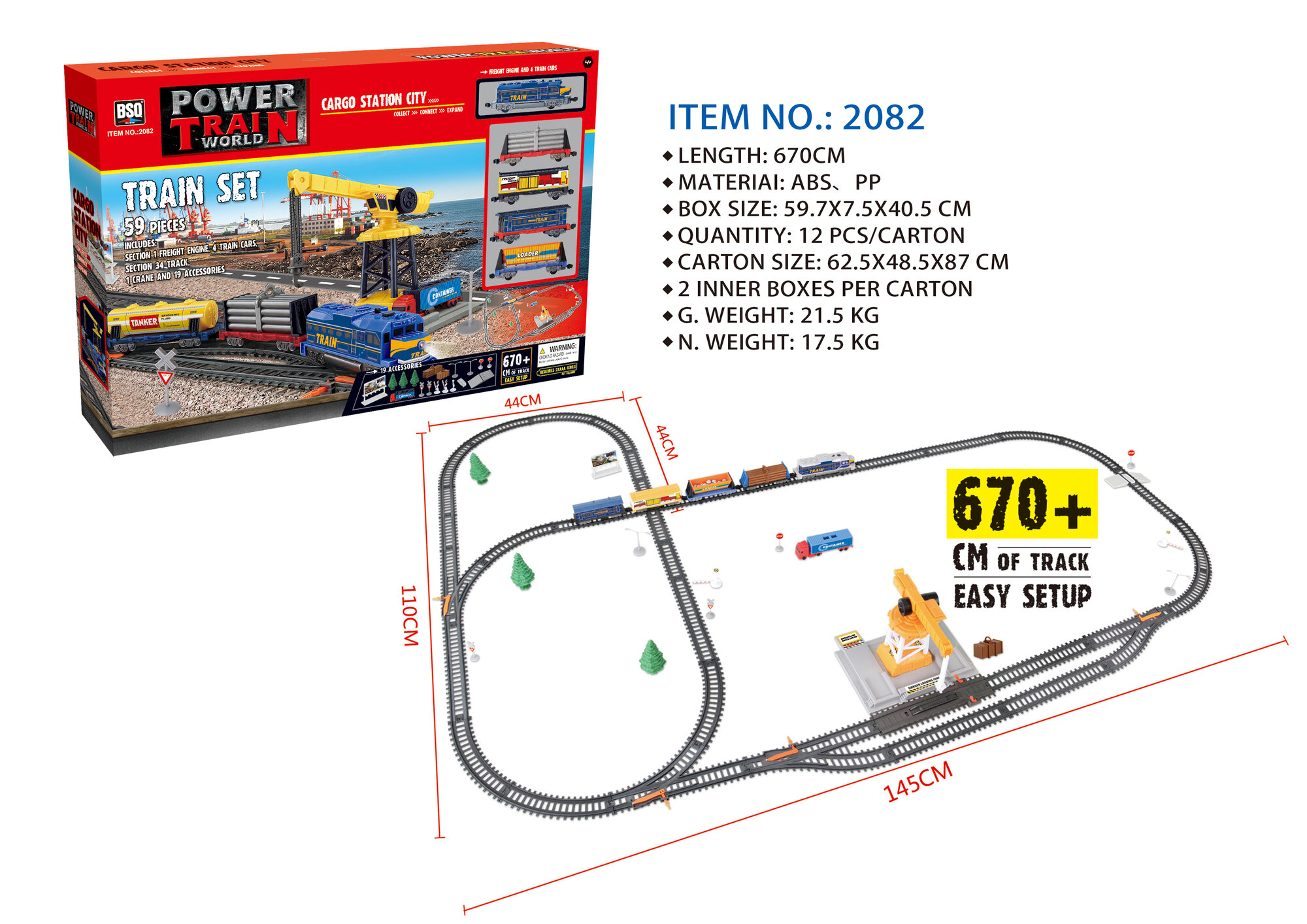 BSQ Железная дорога с подъемным краном, длина полотна 670 см BSQ-2082
