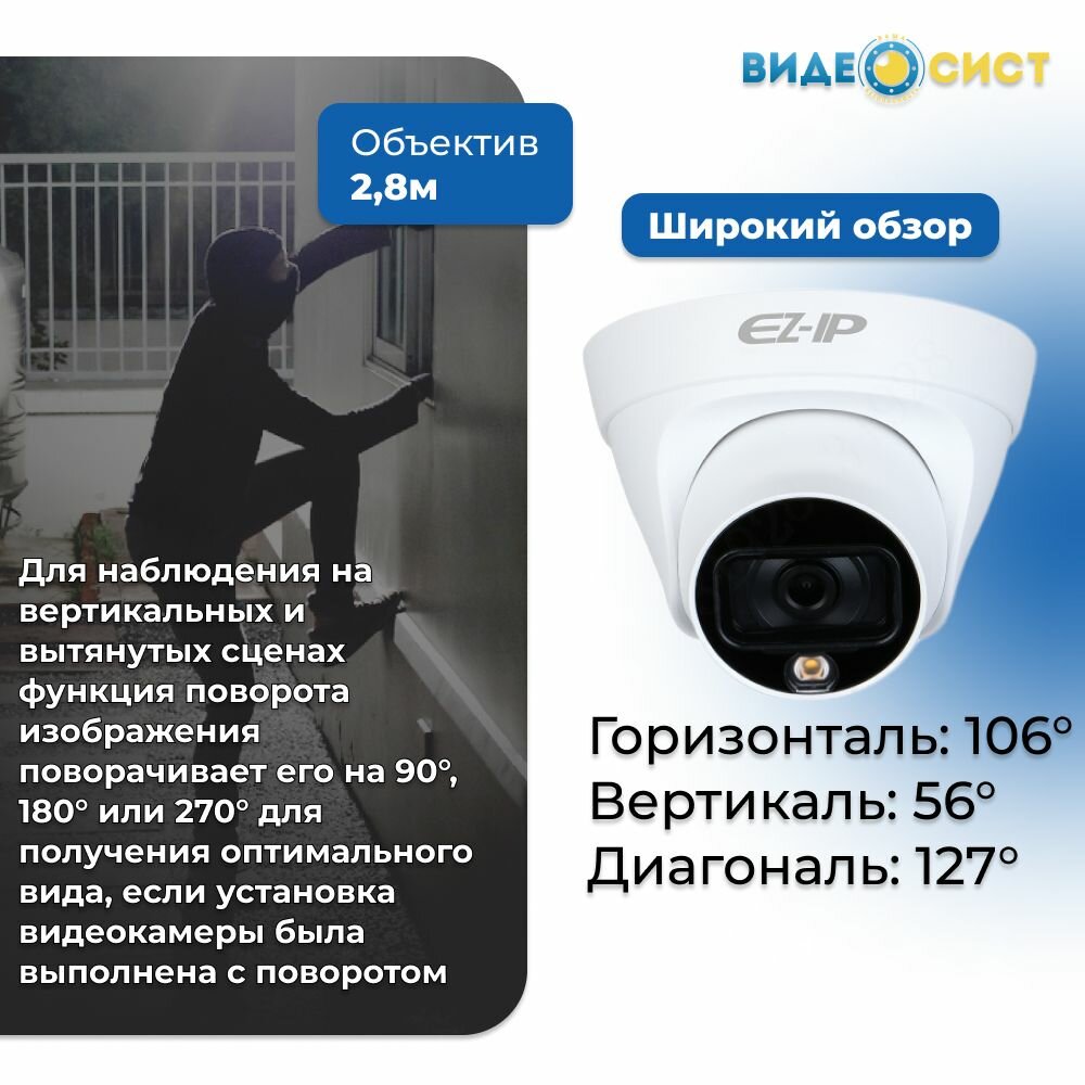 Мини купольная IP видеокамера Full color EZ IP EZ-IPC-T1B20P-LED-0280B