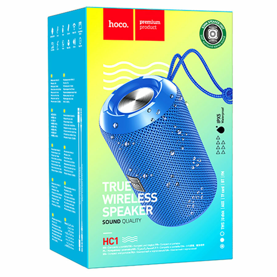 Портативная колонка Hoco HC1, 5 Вт, 1200 мАч, BT5.0, microSD, USB, AUX, FM-радио, синяя