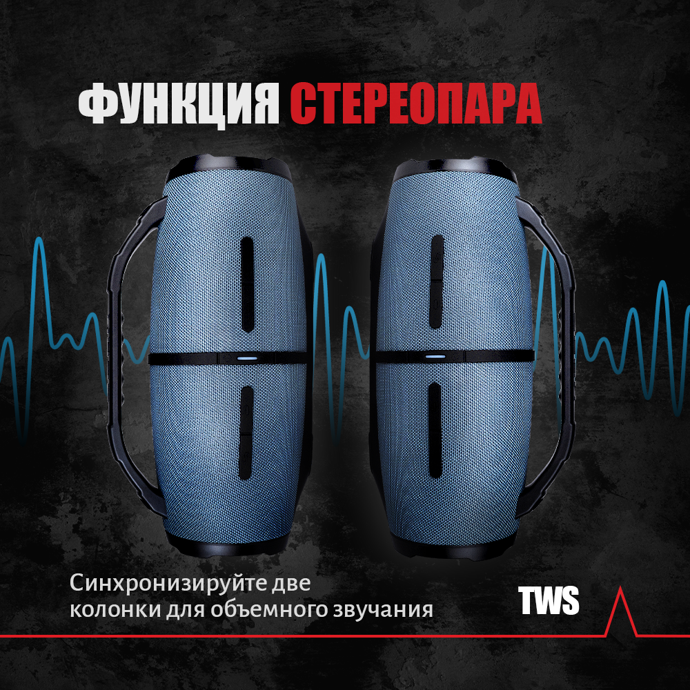 СохранитьПортативная Bluetooth колонка Урал Гагарин ГР-007 синяя, водонепроницаемая IP67, 60 Вт Мощность, TWS, FM-радио, беспроводная интересное: