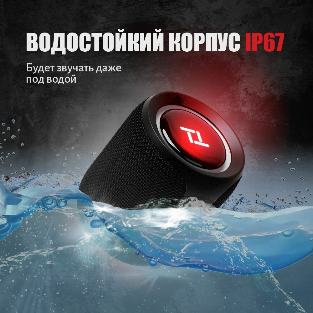 Портативная Bluetooth колонка Урал Гагарин ГР-007 черная, водонепроницаемая IP67, 60 Вт Мощность, TWS, FM-радио, беспроводная