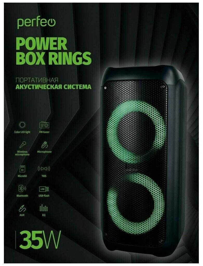 Perfeo портативная акустическая система Power Box 35 Rings + 2 беспроводных микрофона . интересное: