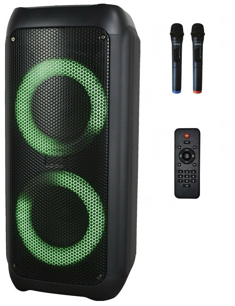 Perfeo портативная акустическая система “Power Box 35 Rings” + 2 беспроводных микрофона