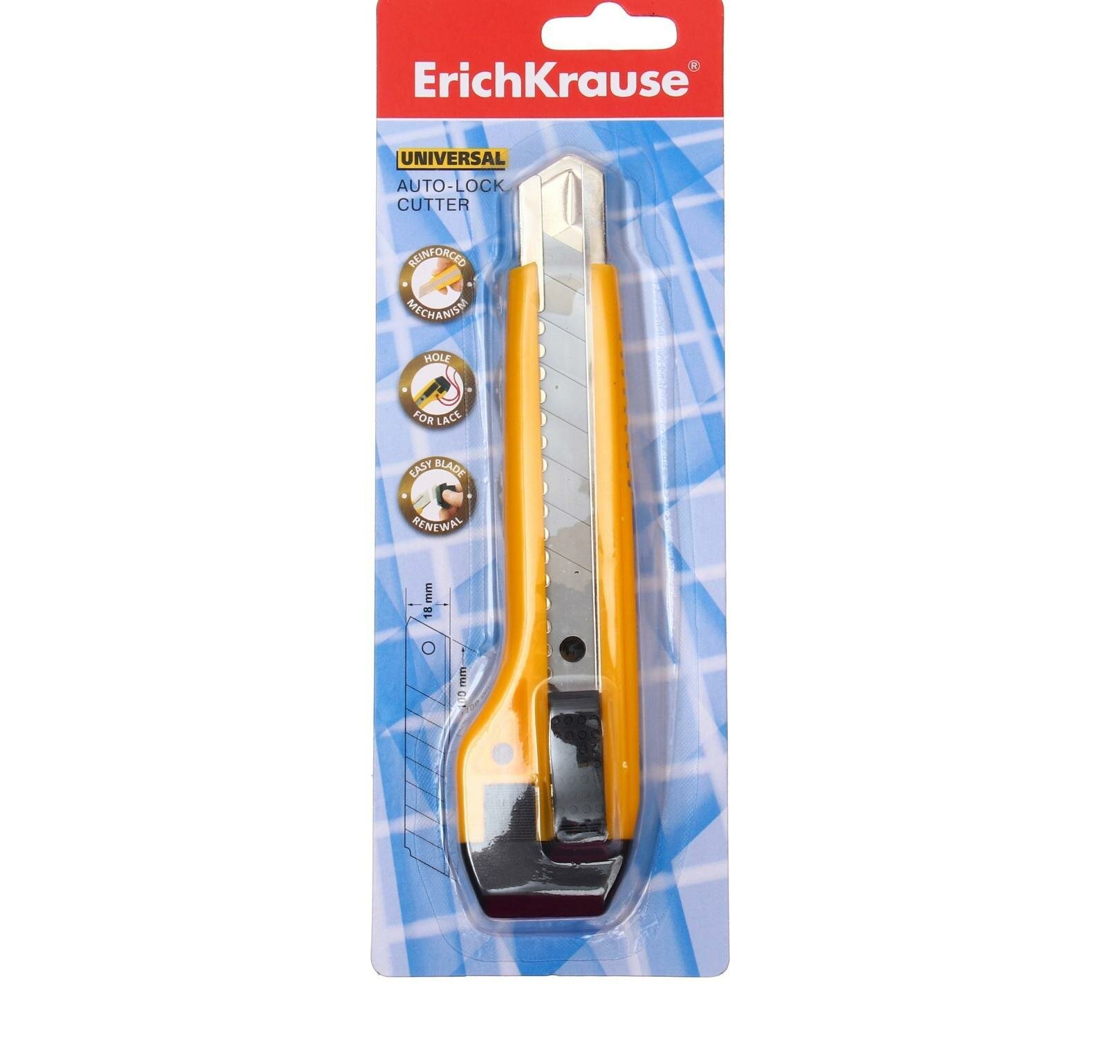 Нож канцелярский Erich Krause UNIVERSAL auto-lock, 18 мм, желтый
