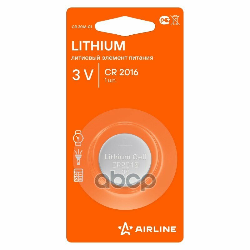 Батарейка Литиевая Airline Cr2016 3v Упаковка 1 Шт. Cr2016-01 AIRLINE арт. CR2016-01