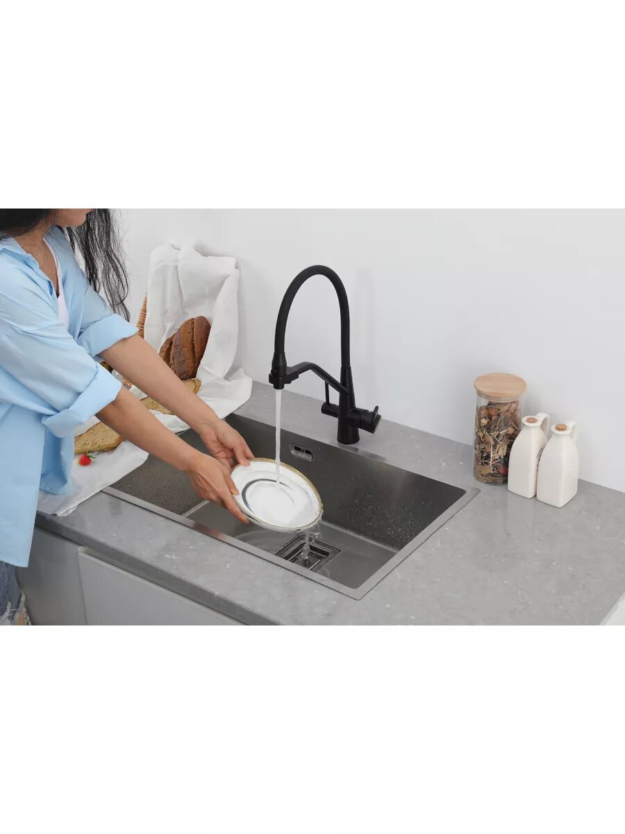 Смеситель для кухни FRAP F4398-6 с подключением фильтра, черный