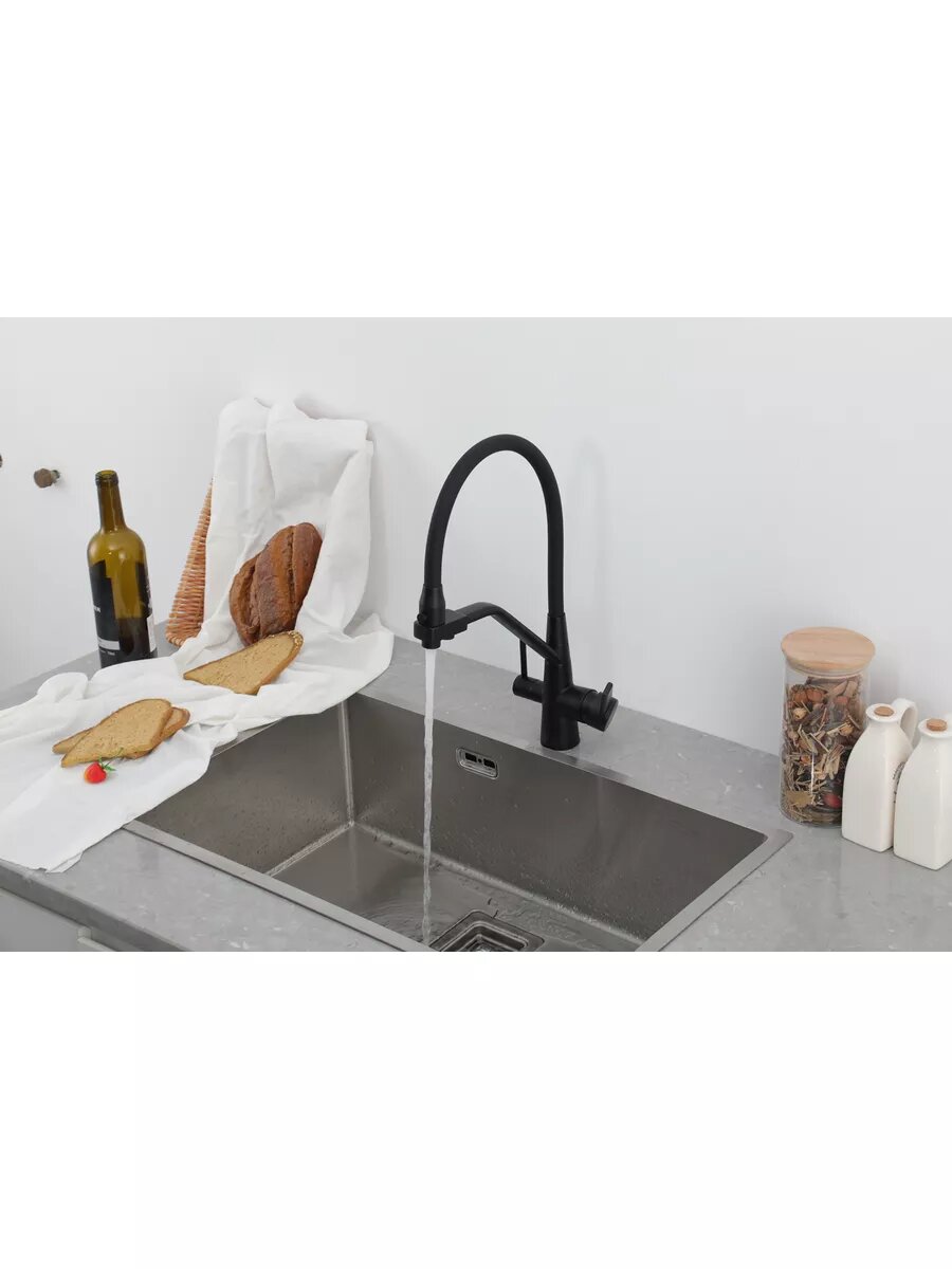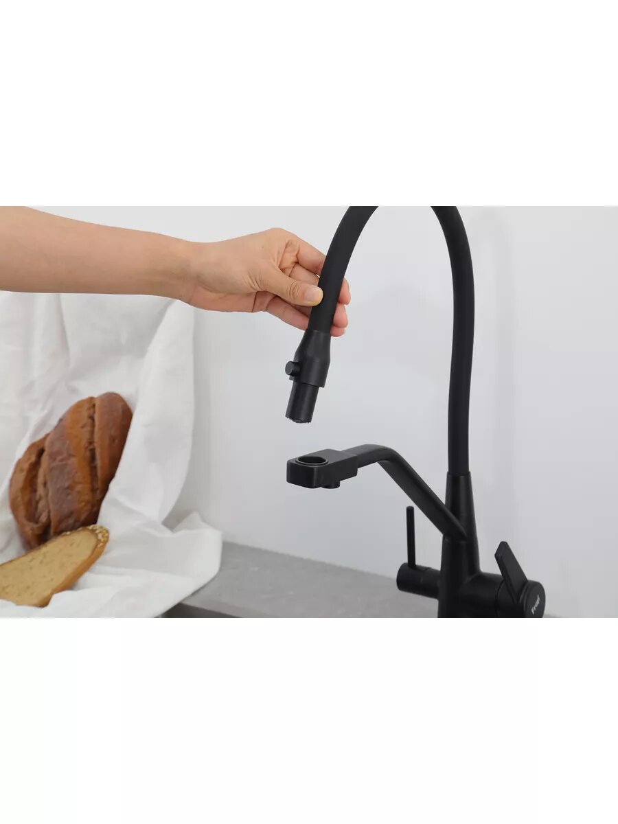 Смеситель для кухни с гибким изливом Frap F4398-5, с фильтром под питьевую воду, цвет сатиновый/черный, латунь