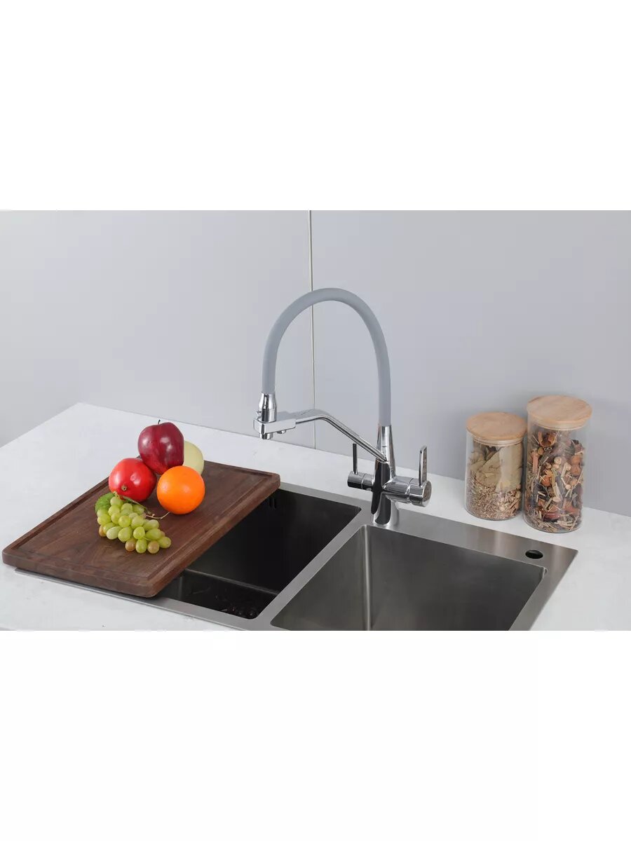 Смеситель для кухни Frap F43550-5 с подключением фильтра, сатин/серый
