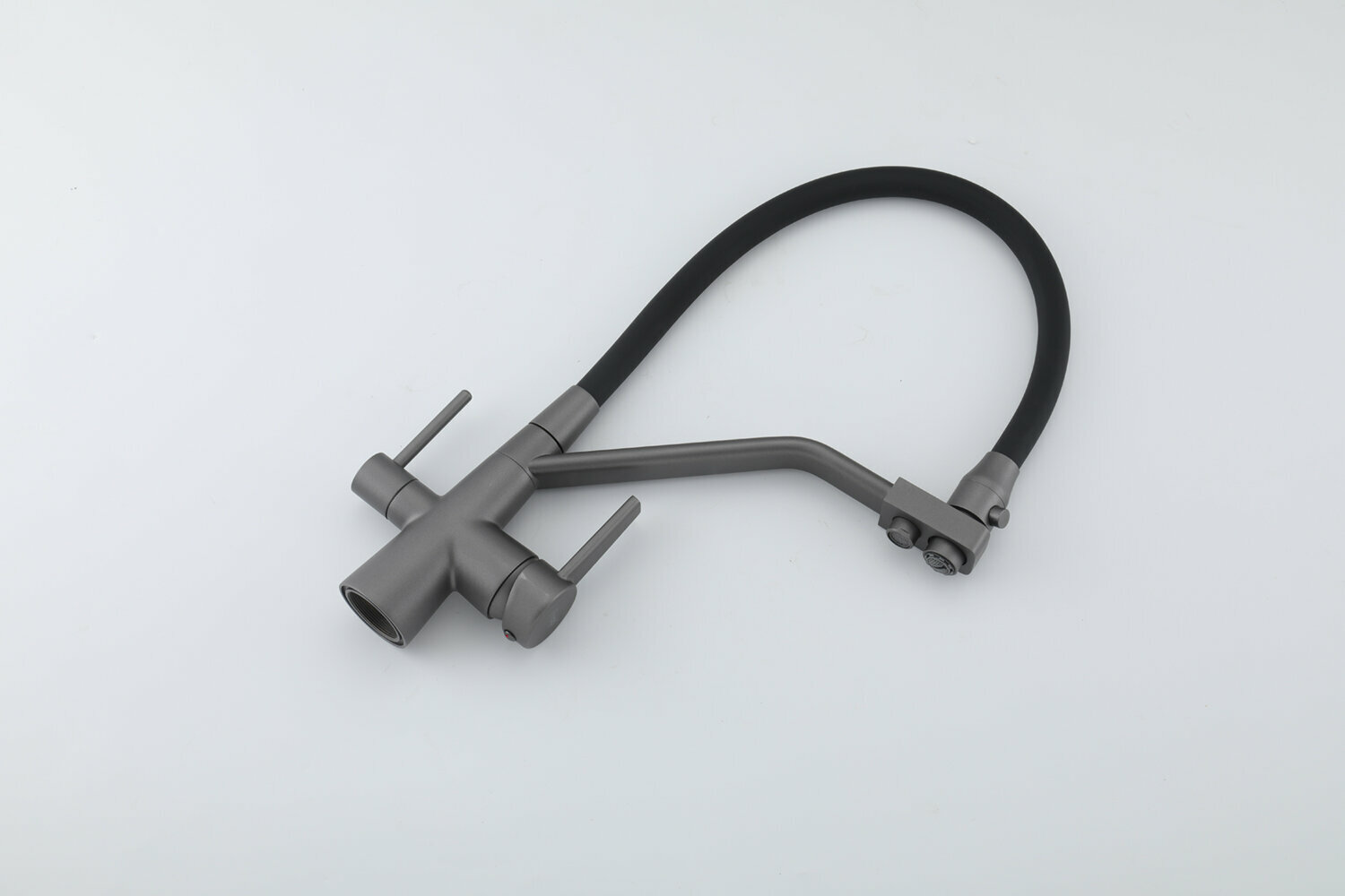 Смеситель для кухни с гибким изливом Frap F4398-5, с фильтром под питьевую воду, цвет сатиновый/черный, латунь