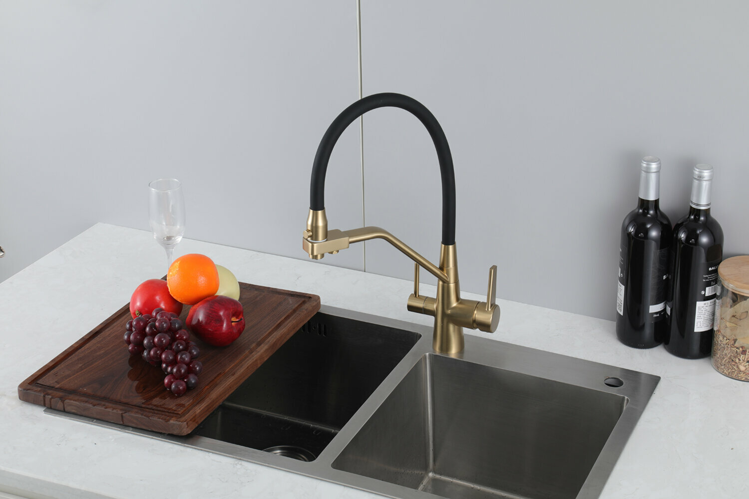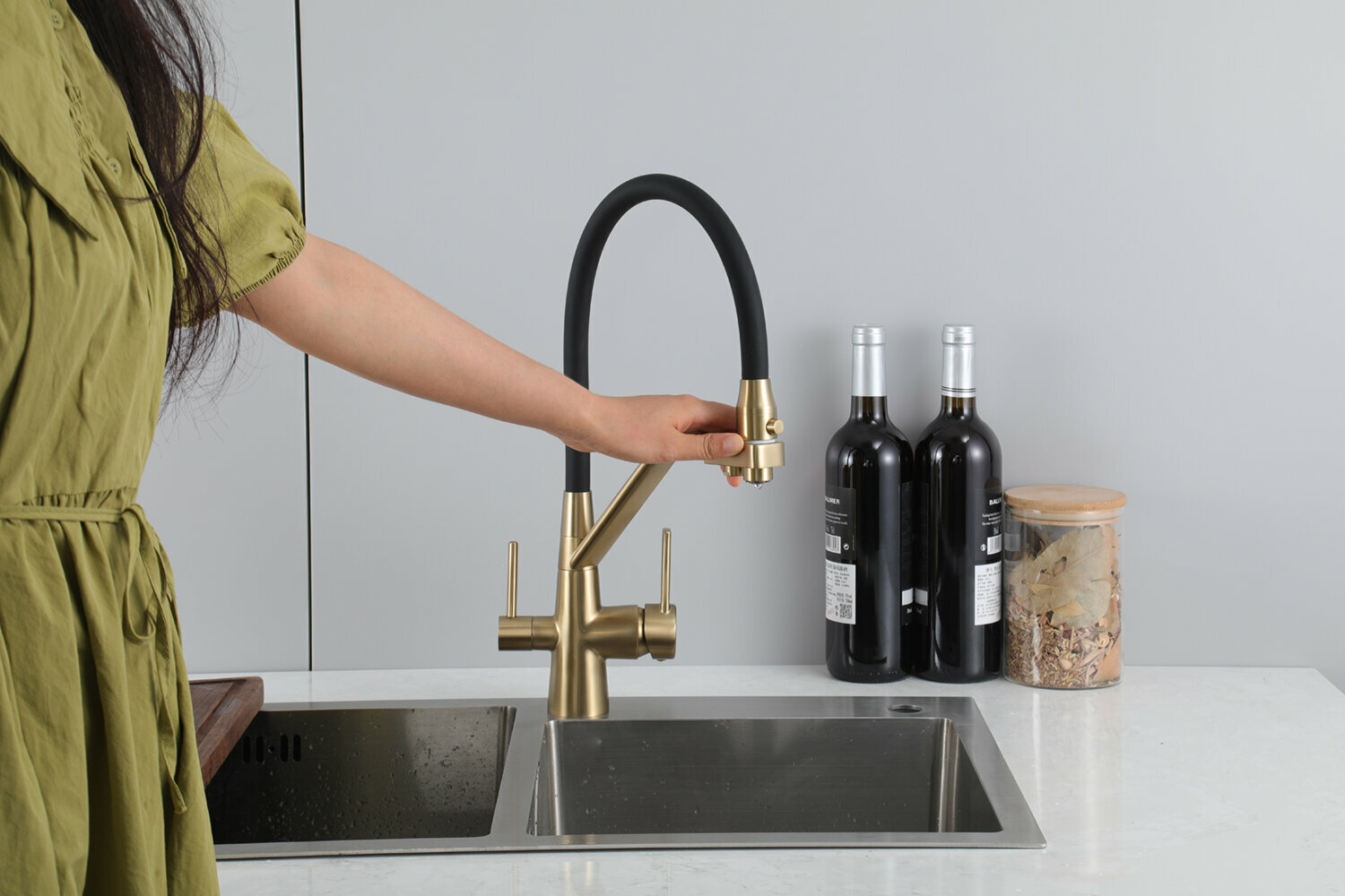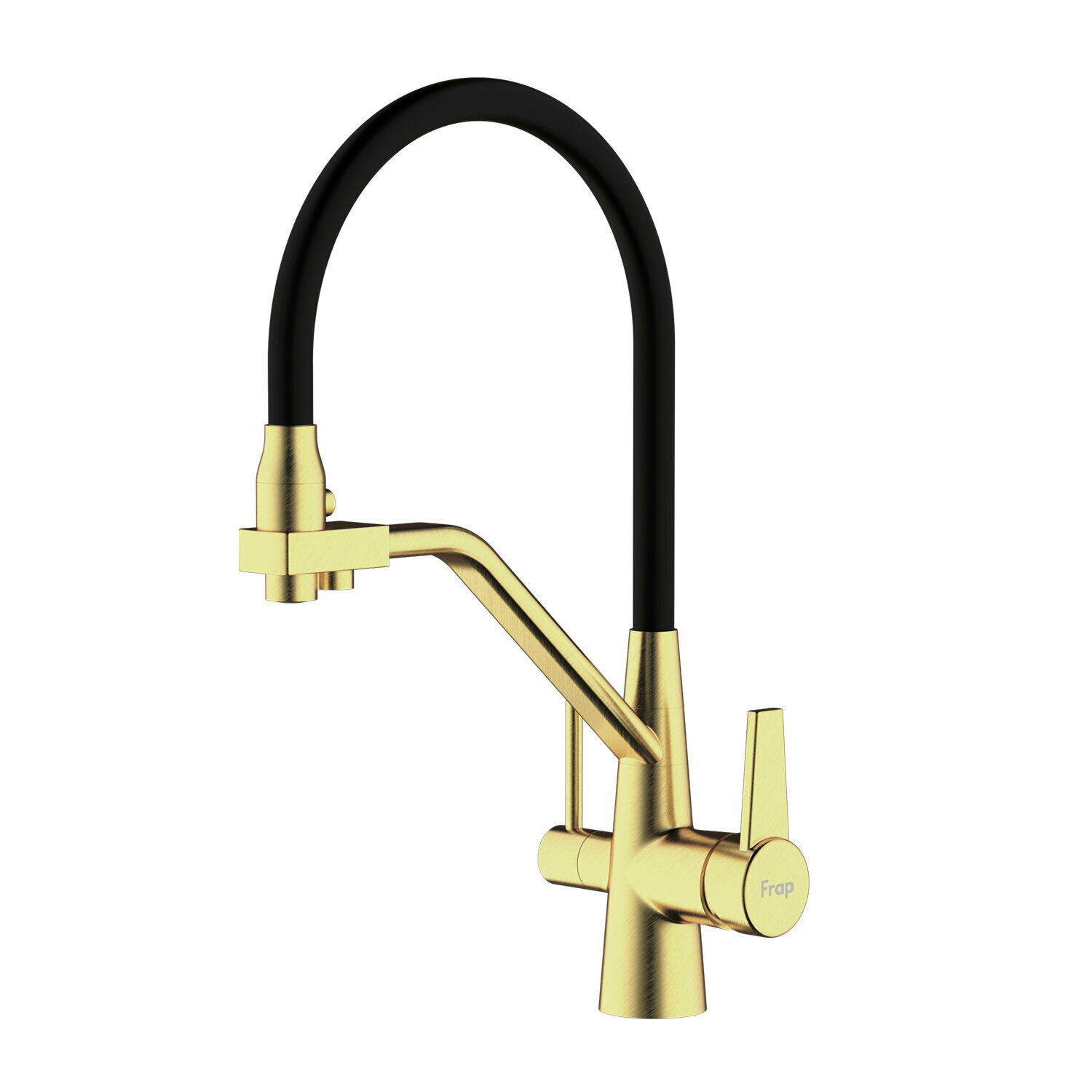 Смеситель для кухни с гибким изливом Frap F4398-5, с фильтром под питьевую воду, цвет сатиновый/черный, латунь