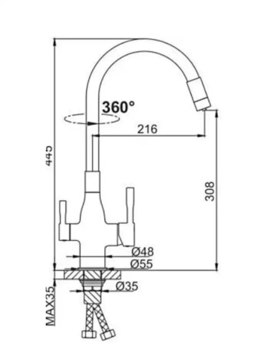 F40899-4 (черный смес. д/кухни ф35 - нерж/сталь)