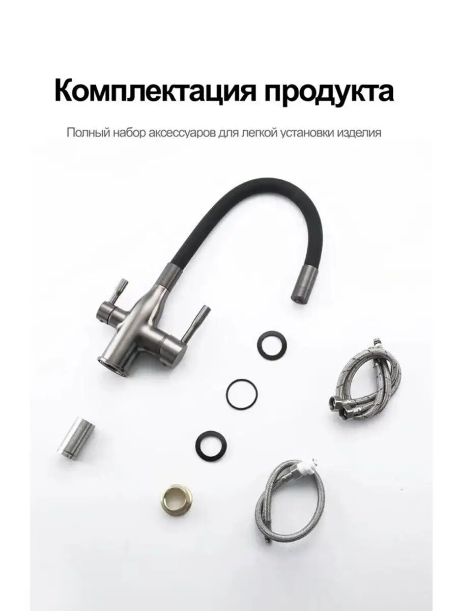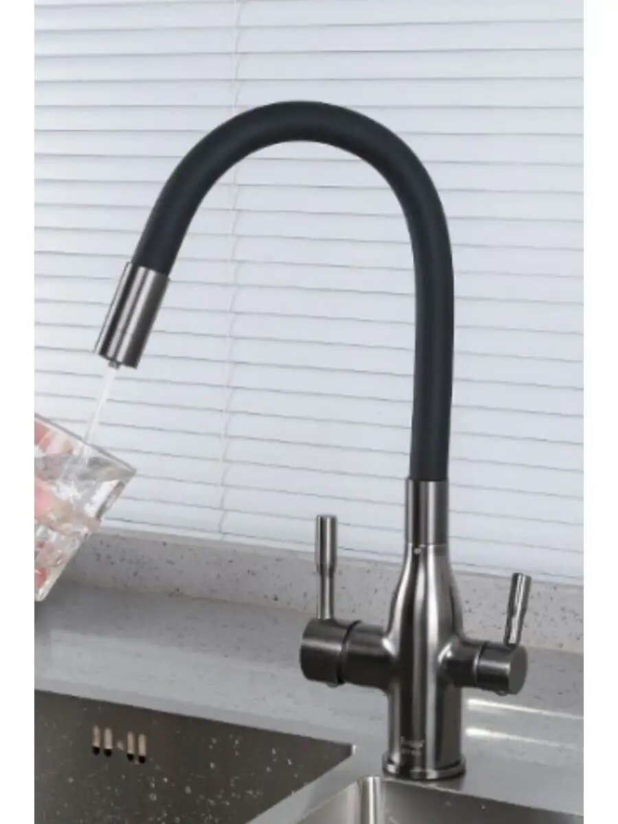 Смеситель для кухни с гибким изливом Frap F4398-5, с фильтром под питьевую воду, цвет сатиновый/черный, латунь