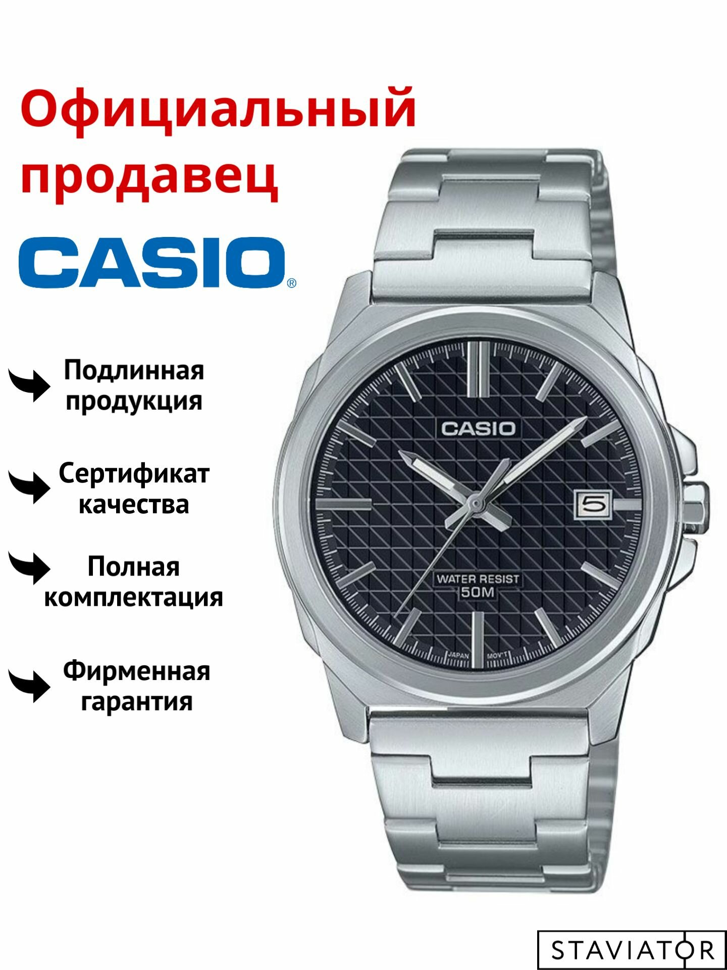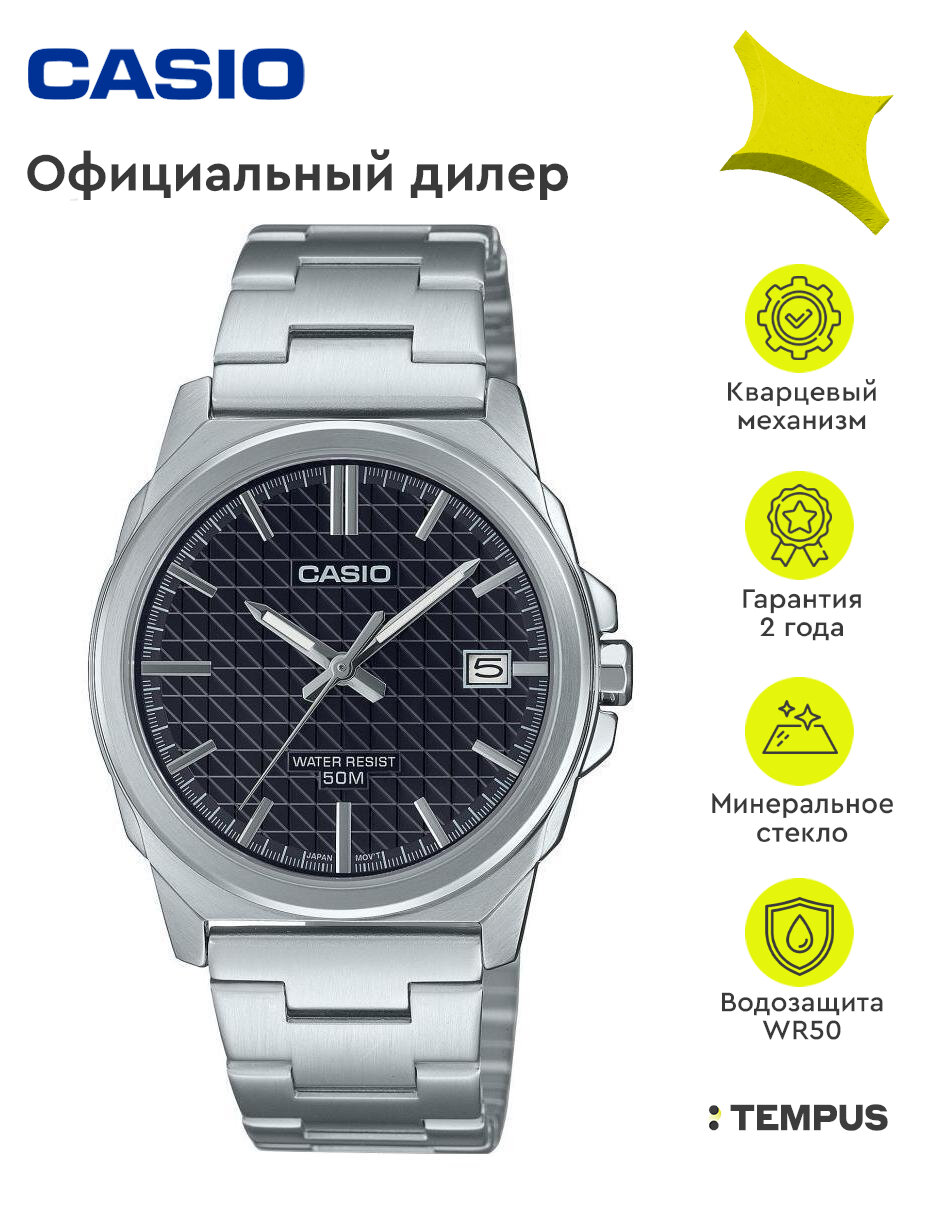 MTP-E720L-1A Casio наручные часы кварцевые WR50 (5 атм) мужские серебряный минеральное стекло