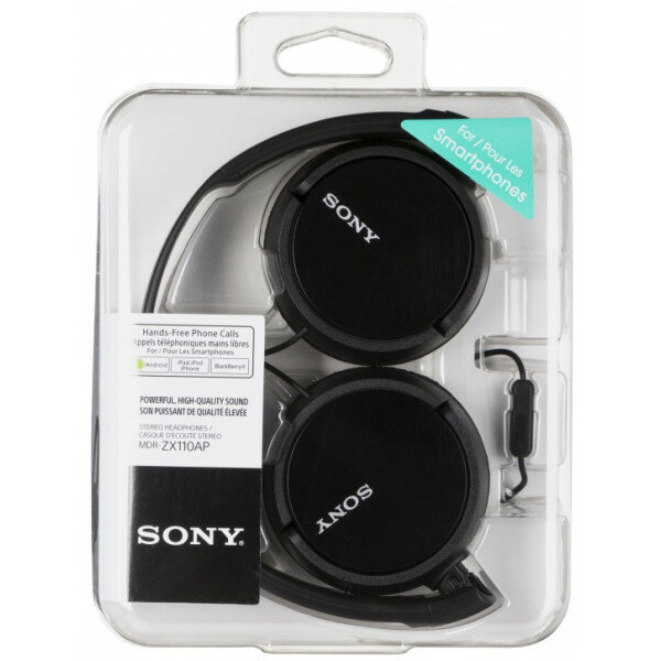 Наушники Sony Mdr-zx110ap, 3.5 мм, мониторные, черный [mdr-zx110ap/bm]