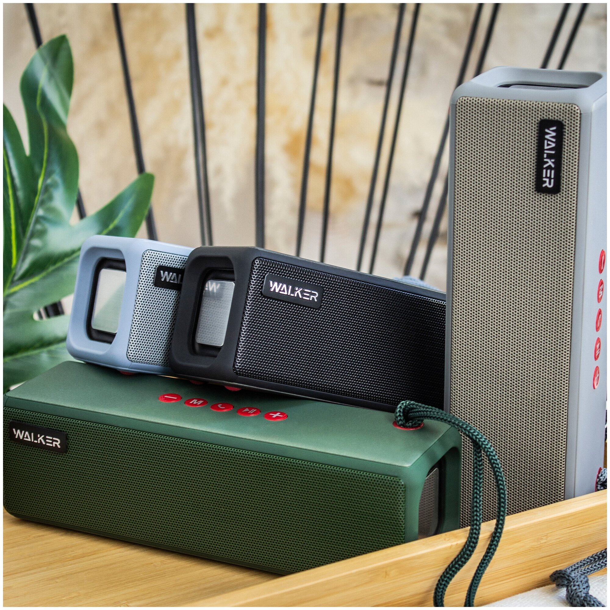 Портативная колонка bluetooth 5.0, WALKER WSP-130, 2 динамика по 5Вт, блютуз, с подсветкой беспроводная, колонка музыкальная как jbl акустика, зеленая