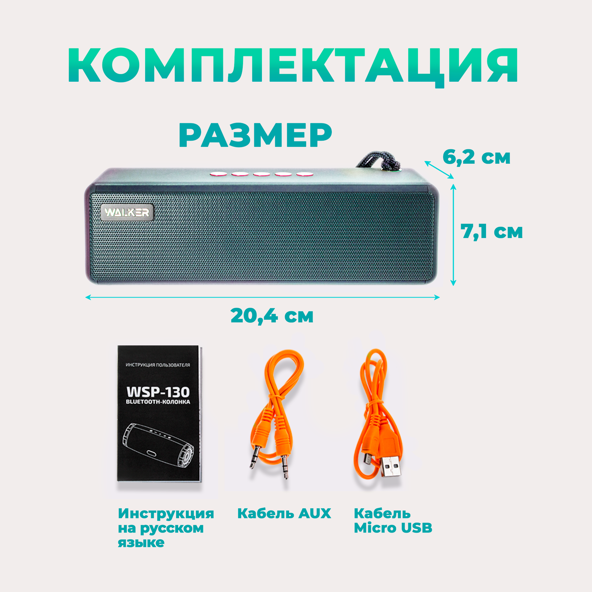 Портативная колонка bluetooth 5.0, WALKER WSP-130, 2 динамика по 5Вт, блютуз, с подсветкой беспроводная, колонка музыкальная как jbl акустика, черная