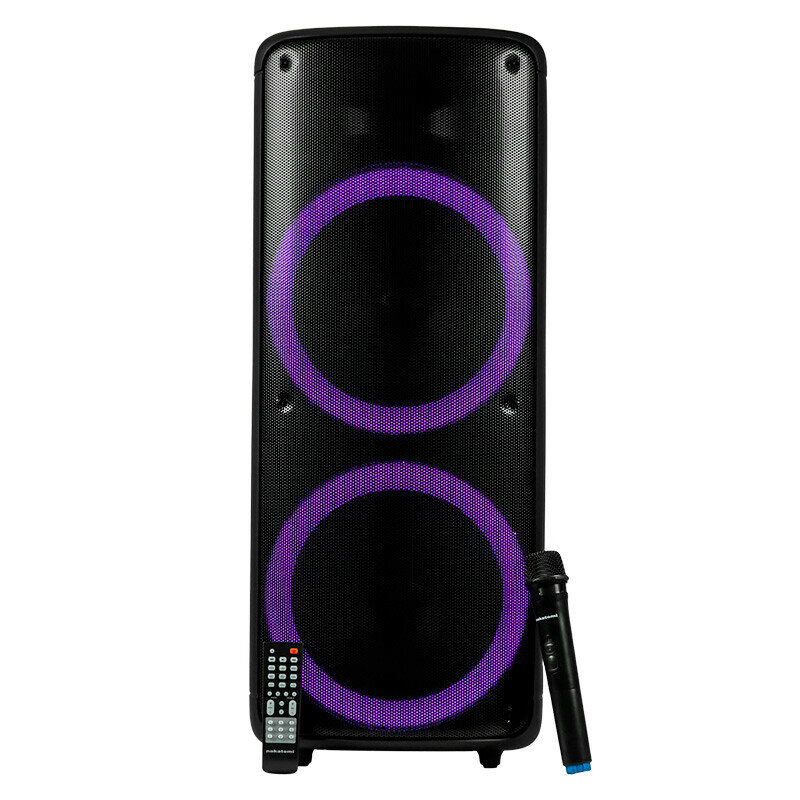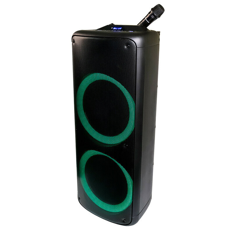 | Особенности | FM-радио / дисплей / караоке / поддержка microSD / ручка / световые эффекты / Подключение электрогитары / беспроводной караоке микрофон / колёсики |