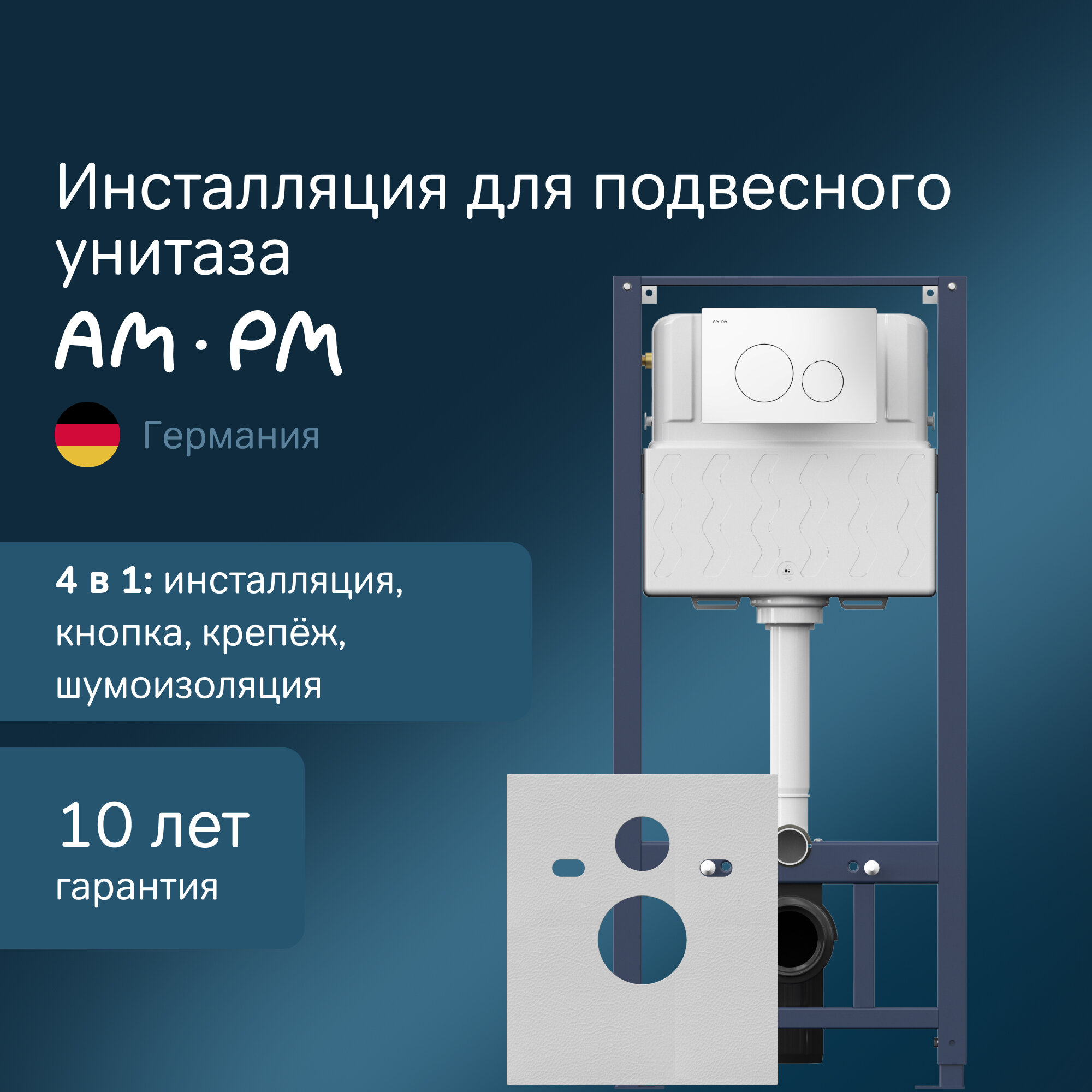 Инсталляция для подвесного унитаза AM.PM Pro I012704.9001 с пневматической кнопкой Pro L пластик белый, звукоизоляционной пластиной