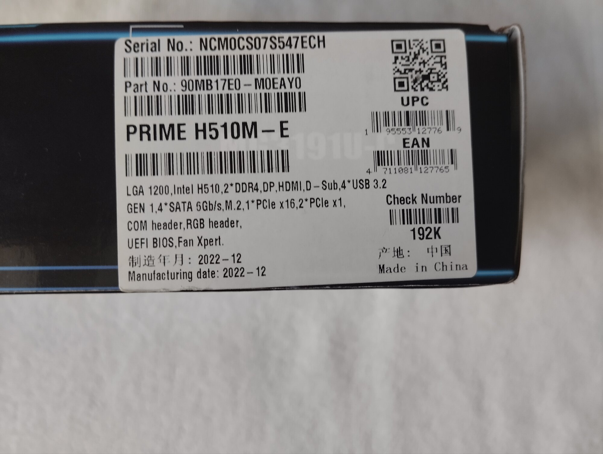 90MB17E0-M0EAY0, ASUS PRIME H510M-E, Материнская плата